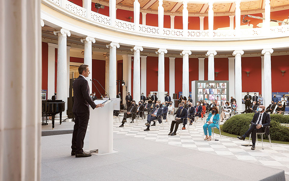 Ο πρωθυπουργός, σε μια πολιτική και μάλλον «αιχμηρή» αποστροφή της ομιλίας του, υπογράμμισε: «Η ένταξη της Ελλάδας στην Ευρώπη αποτελεί πλέον αδιαπραγμάτευτη συνιστώσα της ταυτότητας της χώρας μας» και πρόσθεσε: «Είχαμε μόνον ένα δυσάρεστο διάλειμμα· το 2015 επικράτησε ο διχαστικός λαϊκισμός, τότε που η Ελλάδα βρέθηκε ένα βήμα πριν από τον γκρεμό, αλλά οι προοδευτικές δυνάμεις αντιστάθηκαν και συνέτριψαν τις δυνάμεις της δημαγωγίας». Ο πρωθυπουργός ανέφερε ακόμη: «Η Ευρώπη είναι πολλά περισσότερα από ένα ταμείο. Είναι μια κοινή αντίληψη για τη ζωή, για την οικονομία και την κοινωνία, που προσφέρει δικαιώματα, αλλά γεννάει και υποχρεώσεις».