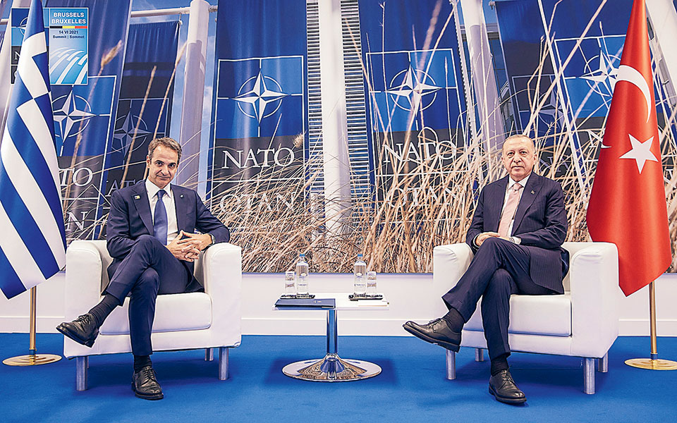 ΒΡΥΞΕΛΛΕΣ – ΑΝΤΑΠΟΚΡΙΣΗ. Βήμα παγίωσης της αποκλιμάκωσης και διασφάλισης ήρεμων νερών για το καλοκαίρι ήταν η πολυαναμενόμενη συνάντηση του Κυριάκου Μητσοτάκη με τον Ταγίπ Ερντογάν, στο περιθώριο της Συνόδου Κορυφής χθες στο ΝΑΤΟ.