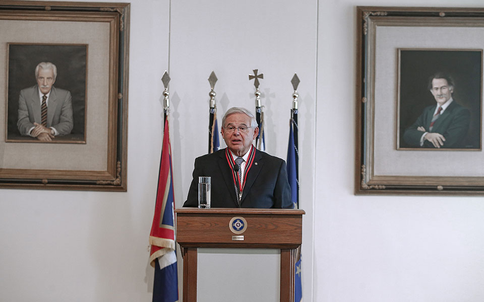 «Η Ελλάδα αποτελεί τον “φάρο ελπίδας” σε σχέση με την ελευθερία- τι σημαίνει ελευθερία, τι σημαίνει δημοκρατία, τι σημαίνει η εκπλήρωση των στόχων του ανθρωπίνου πνεύματος» τόνισε ο πρόεδρος της Επιτροπής Εξωτερικών Σχέσεων της Γερουσίας των ΗΠΑ, γερουσιαστής, Ρόμπερτ Μενέντεζ, στην ομιλία του στο δημαρχιακό μέγαρο των Αθηνών, όπου του απονεμήθηκε από το δήμαρχο Κώστα Μπακογιάννη η ύψιστη διάκριση της ελληνικής πρωτεύουσας, το Μετάλλιο Αξίας της Πόλεως των Αθηνών.