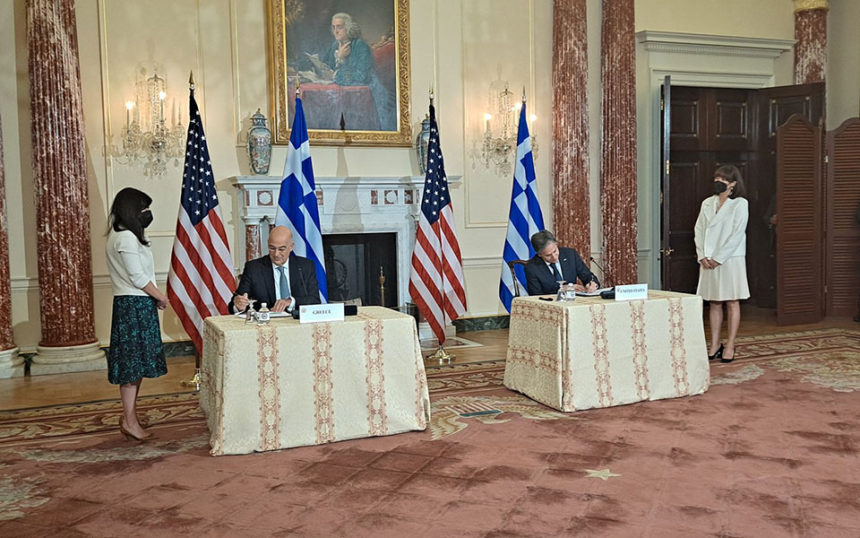 Secretary Blinken and Foreign Minister Dendias signing the US-Greece Mutual Defense Strategic Agreement. They both stressed its strategic importance, Dendias noted the U.S. use of more Greek bases while Blinken its indefinite extension. pic.twitter.com/mjkHh4aAUV