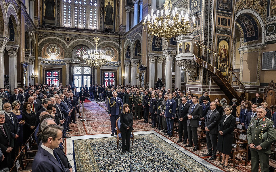 Στη Μητρόπολη Αθηνών, το μνημόσυνο αυτό τελέστηκε από τον Αρχιεπίσκοπο Αθηνών και πάσης Ελλάδος Ιερώνυμο και μέλη της Διαρκούς Ιεράς Συνόδου, παρουσία της Προέδρου της Δημοκρατίας Κατερίνας Σακελλαροπούλου, του πρωθυπουργού Κυριάκου Μητσοτάκη, πολιτικών, φορέων της τοπικής αυτοδιοίκησης και της ηγεσίας των ενόπλων δυνάμεων.