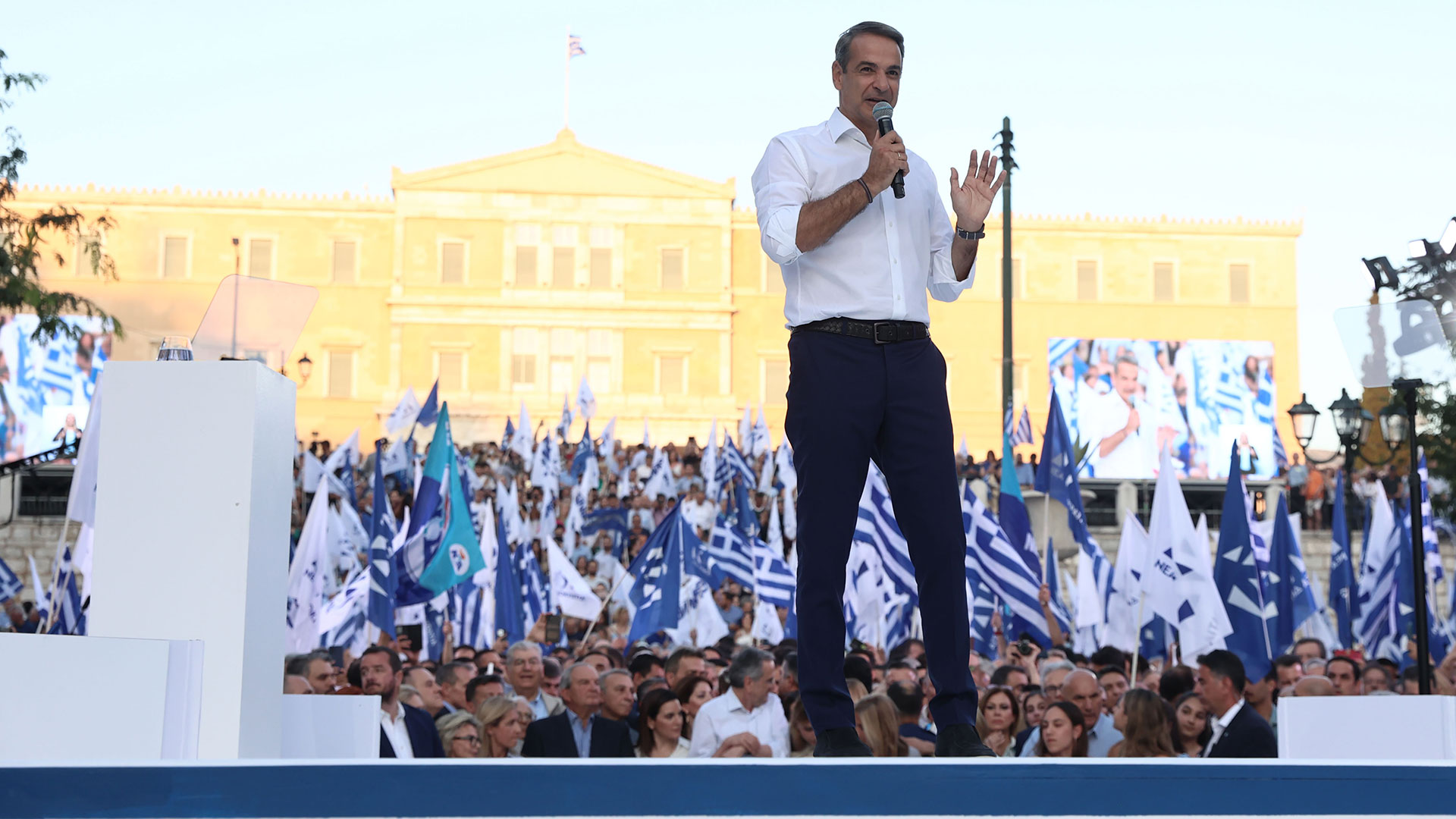 «Η φωνή της Αθήνας ακούγεται σήμερα βροντερή σε κάθε γωνία της πατρίδας μας. Μένει να αντηχήσει και στις κάλπες της Κυριακής με τη ΝΔ τη μεγάλη νικήτρια. Μόνο τότε θα κόψουμε το νήμα αυτού του διμήνου προεκλογικού μαραθωνίου με ένα αποτέλεσμα που θα δίνει ισχυρή κυβέρνηση της ΝΔ», τόνισε ο Κυριάκος Μητσοτάκης στην κεντρική προεκλογική συγκέντρωση της ΝΔ στο Σύνταγμα.