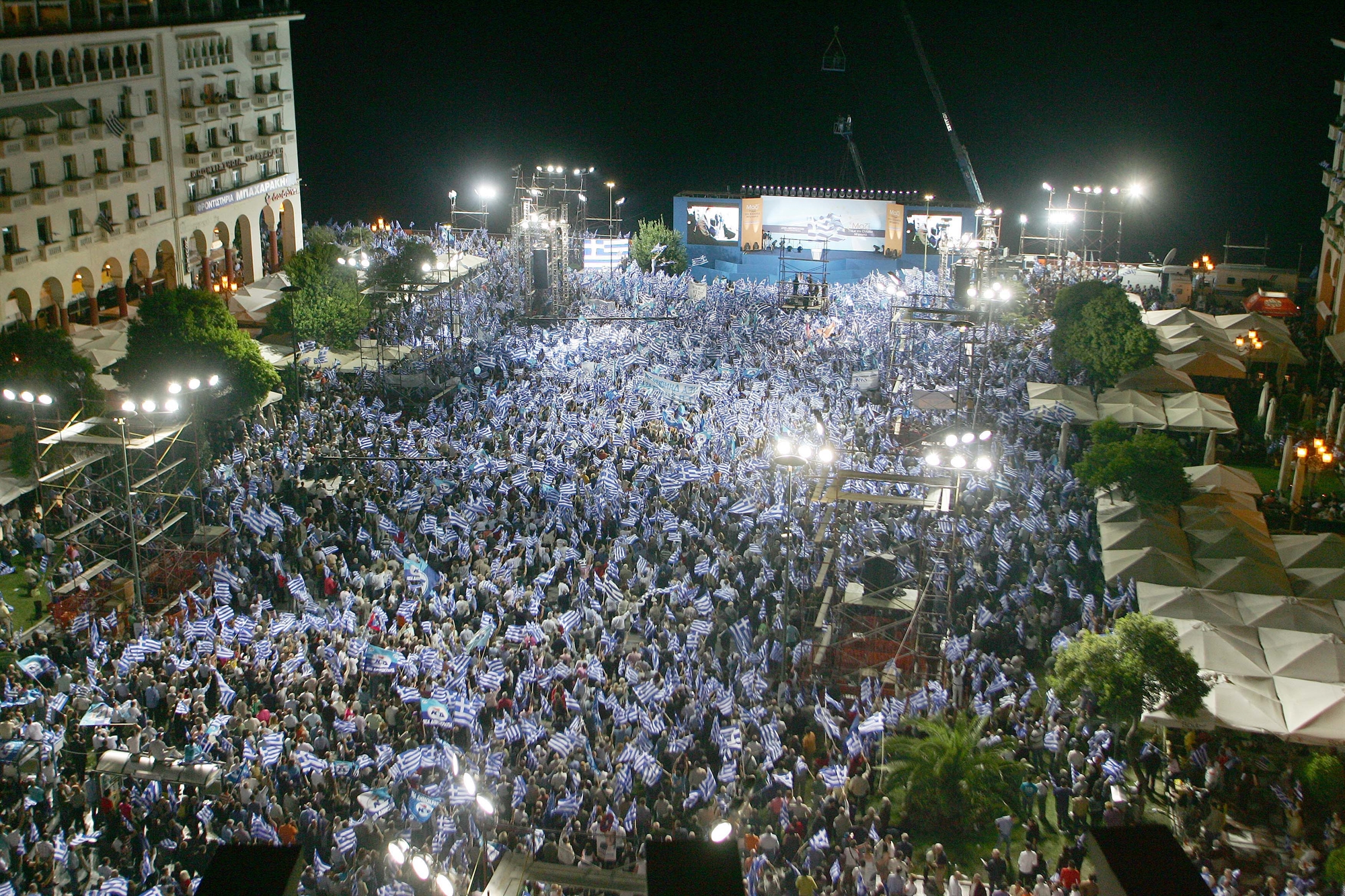 Στη μια άκρη της, μερικά μόλις μέτρα από τη θάλασσα, ο μπρούντζινος ανδριάντας του Αριστοτέλη και στην άλλη, βορειότερα, μαρμάρινος εκείνος, του Ελευθερίου Βενιζέλου. Ατενίζουν και οι δυο τους με θλίψη την έρημη τούτες τις προεκλογικές μέρες πλατεία Αριστοτέλους. Αλλες εποχές, όχι πολύ μακρινές, παραμονές εκλογών «η πλατεία ήταν γεμάτη» από οπαδούς των κομμάτων που έσπευδαν να τη γεμίσουν, για να στείλουν «σάλπισμα νίκης» απ’ τη Θεσσαλονίκη στην υπόλοιπη επικράτεια. Εδινε με τις συγκεντρώσεις και ομιλίες των κομματικών ηγετών τον τόνο, σε επικοινωνιακό επίπεδο, στις πολιτικές εξελίξεις. Κατά πολλούς ήταν το πρόκριμα των αποτελεσμάτων των εκλογικών αναμετρήσεων, δεδομένου ότι τότε δεν υπήρχαν οι δημοσκοπήσεις σε τέτοια έκταση. Η Αριστοτέλους ήταν η πλατεία που, όπως συνήθιζαν να λένε οι συγκεντρωσιάρχες των κομμάτων, «όποιος πολιτικός ηγέτης τη γεμίσει θα κερδίσει τις εκλογές». Και γι’ αυτό μετέφεραν με λεωφορεία και τρένα απ’ όλη την Ελλάδα κομματικούς χειροκροτητές και με αεροπλάνα από το εξωτερικό.