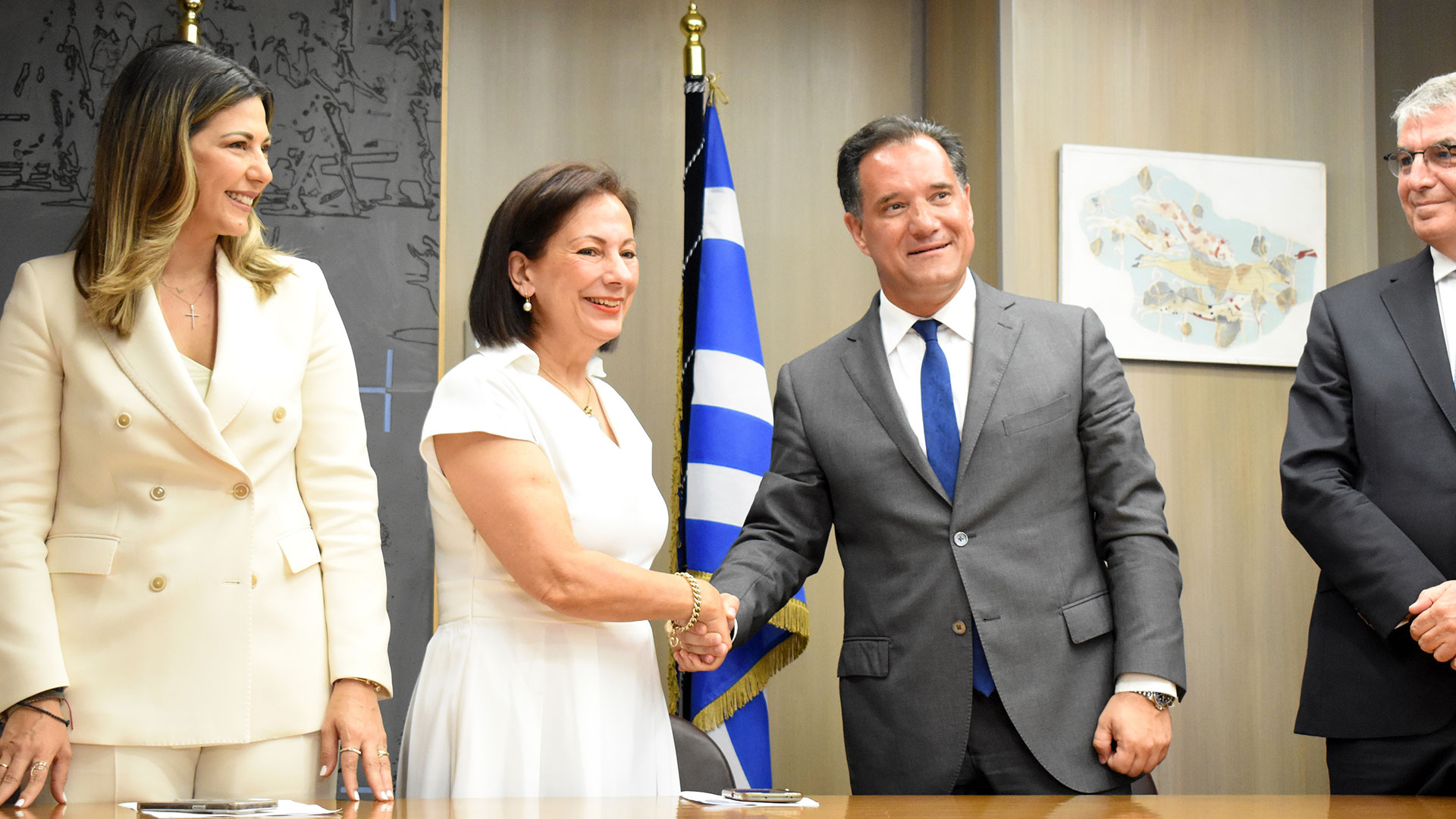 Η υπηρεσιακή υπουργός Εργασίας και Κοινωνικών Υποθέσεων, Πατρίνα Παπαρρηγοπούλου, παρέδωσε το υπουργείο Εργασίας και Κοινωνικής Ασφάλισης στον υπουργό, Αδωνι Γεωργιάδη και στους υφυπουργούς, Πάνο Τσακλόγλου και Βασίλη Σπανάκη και το υπουργείο Κοινωνικής Συνοχής και Οικογένειας στην υπουργό, Σοφία Ζαχαράκη και στην υφυπουργό, Μαρία Κεφάλα.