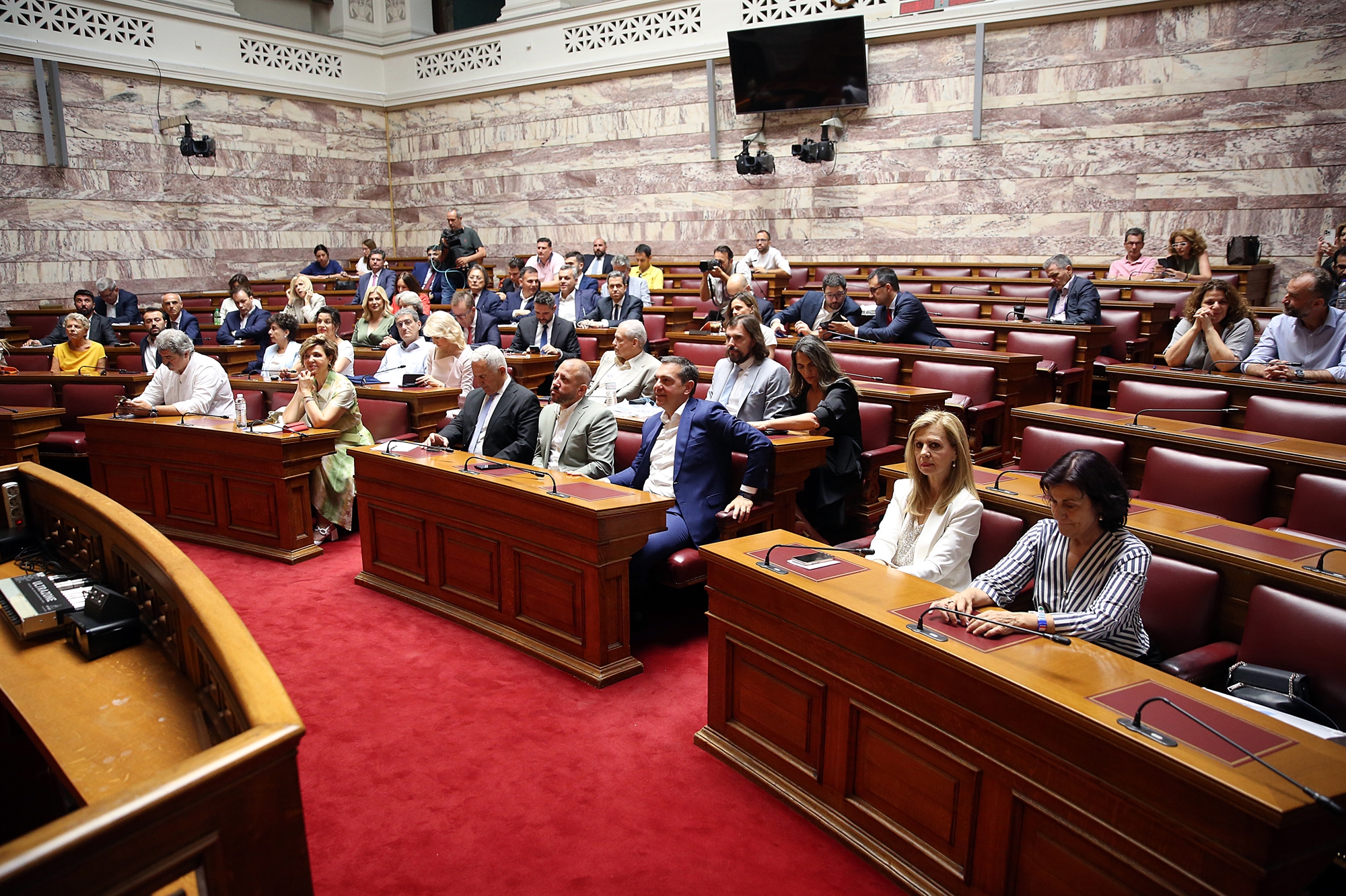 Η πρώτη μεγάλη κοινοβουλευτική σύγκρουση χωρίς τον Αλέξη Τσίπρα στο «τιμόνι» του ΣΥΡΙΖΑ θα πραγματοποιηθεί στη συζήτηση επί των προγραμματικών δηλώσεων της κυβέρνησης στη Βουλή. Στην Κουμουνδούρου γνωρίζουν πως θα είναι ένα κρίσιμο «crash test» και έτσι οι προετοιμασίες είναι πυρετώδεις. Χθες πραγματοποιήθηκε συνεδρίαση του προεδρείου της κοινοβουλευτικής ομάδας, κατά την οποία, πέρα από τη χωροταξία και τη γειτνίαση με τους Σπαρτιάτες, έγινε και συζήτηση για την αντιπολιτευτική γραμμή που θα ακολουθηθεί. Ηδη οι πρώην τομεάρχες του κόμματος έχουν μπει στη διαδικασία να στείλουν τα απαραίτητα σημειώματα στους επικεφαλής της Κ.Ο. προκειμένου να χωριστούν οι τομείς, αφού οριστούν και οι βουλευτές που θα πάρουν τον λόγο. Από τους κοινοβουλευτικούς εκπροσώπους ο Νίκος Παππάς θα αναλάβει τον τομέα της οικονομίας και της ανάπτυξης. Ο Νάσος Ηλιόπουλος τα εργασιακά και τα κοινωνικά θέματα και η Θεοδώρα Τζάκρη τους τομείς άμυνας και εξωτερικής πολιτικής. Σήμερα το προεδρείο της κοινοβουλευτικής ομάδας θα συνεδριάσει εκ νέου προκειμένου να μπουν οι τελικές πινελιές.