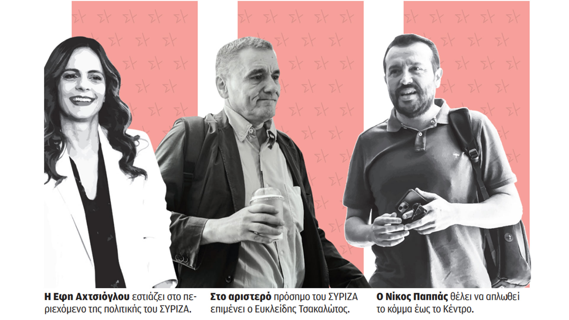 Το ευρωπαϊκό στίγμα του ΣΥΡΙΖΑ είναι άμεσα συνδεδεμένο με τον προσανατολισμό στον οποίο θα καταλήξει και στο εσωτερικό. Η Eφη Αχτσιόγλου θέλει να ξεπεράσει παλαιά ταυτοτικά ζητήματα. Δεν μένει στο αν το κόμμα θα στρίψει προς τα Αριστερά ή προς στο Κέντρο, αλλά στο περιεχόμενο της πολιτικής και τονίζει πως δεν οραματίζεται έναν ΣΥΡΙΖΑ που θα ζει και θα αναπνέει στην πλατεία Κουμουνδούρου. Να απλωθεί το κόμμα από την Αριστερά έως το Κέντρο επιθυμεί ο Νίκος Παππάς, χτυπώντας καμπανάκι πως η νίκη δεν μπορεί να έρθει με τον περιορισμό στη ζεστή φωλιά της ριζοσπαστικής Αριστεράς. Στο Αριστερό πρόσημο του ΣΥΡΙΖΑ, αλλά και στις συμμαχίες που οφείλει να κάνει με την κοινωνική βάση έχοντας ανοιχτούς ορίζοντες, επιμένει ο Ευκλείδης Τσακαλώτος. Τρεις εντελώς διαφορετικές οπτικές που θα «κονταροχτυπηθούν» το επόμενο διάστημα. «Πολιτική» χαρακτηρίζει τη δική του υποψηφιότητα ο Στέφανος Τζουμάκας.