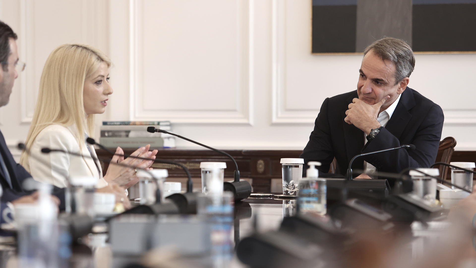 Ο πρωθυπουργός και πρόεδρος της Νέας Δημοκρατίας Κυριάκος Μητσοτάκης είχε σήμερα συνάντηση με την πρόεδρο της Βουλής των Αντιπροσώπων της Κυπριακής Δημοκρατίας και πρόεδρο του Δημοκρατικού Συναγερμού, Αννίτα Δημητρίου, στο Μέγαρο Μαξίμου.