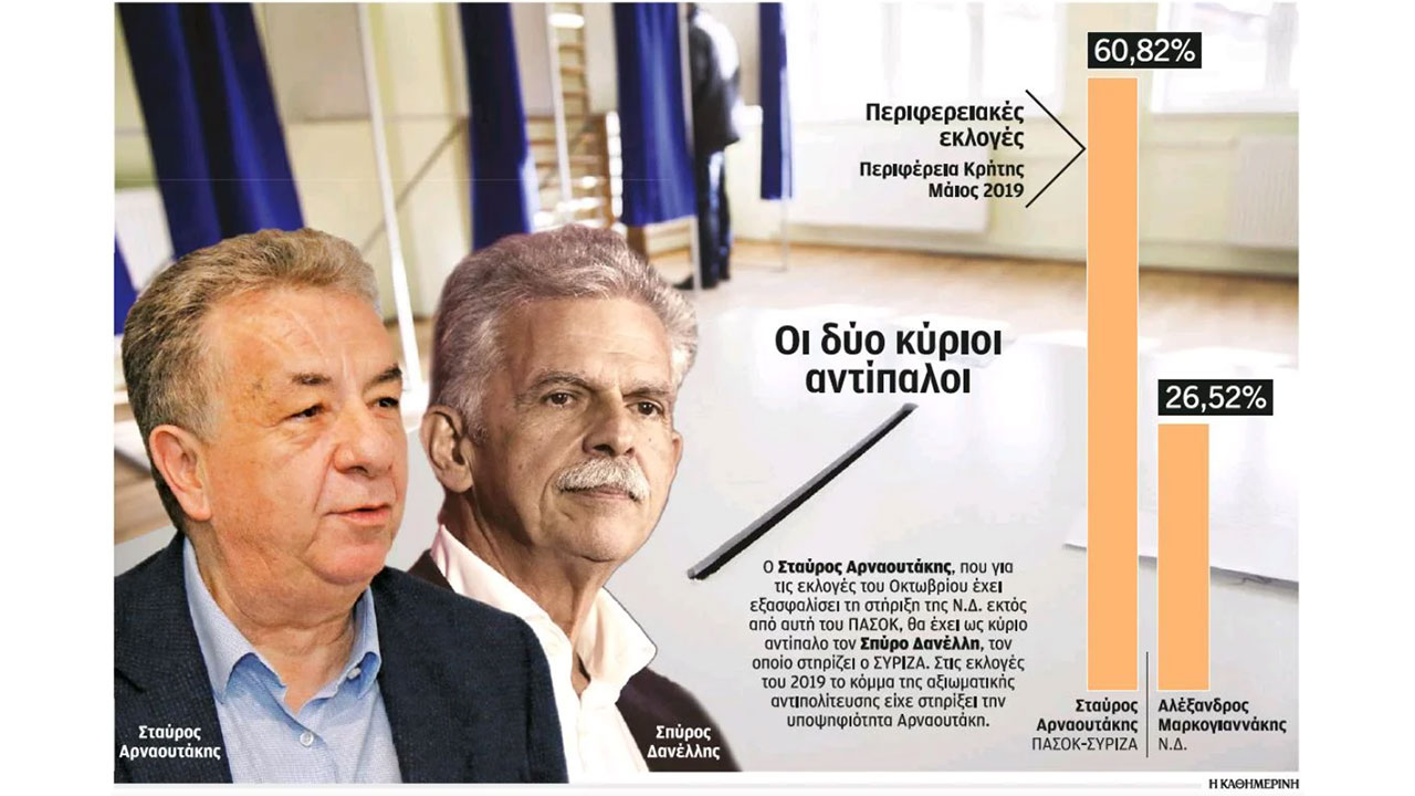 Η στήριξη της Ν.Δ. στον Σταύρο Αρναουτάκη έφερε αλλαγή σχεδίων στον ΣΥΡΙΖΑ. Καθώς το κόμμα δεν θα μπορούσε να βρεθεί να στηρίζει το ίδιο ψηφοδέλτιο με τη Ν.Δ., επελέγη στις προσεχείς αυτοδιοικητικές εκλογές να υποστηριχθεί η υποψηφιότητα του Σπύρου Δανέλλη, ο οποίος έχει αυτοδιοικητική θητεία, καθώς είχε εκλεγεί δήμαρχος Χερσονήσου. Είχε εκλεγεί βουλευτής Ηρακλείου του Συνασπισμού και επίσης είχε εκλεγεί ευρωβουλευτής με το ΠΑΣΟΚ και βουλευτής Ηρακλείου με το Ποτάμι, ενώ στις εκλογές του 2019 ήταν υποψήφιος βουλευτής του ΣΥΡΙΖΑ, αλλά δεν κατάφερε να εκλεγεί.