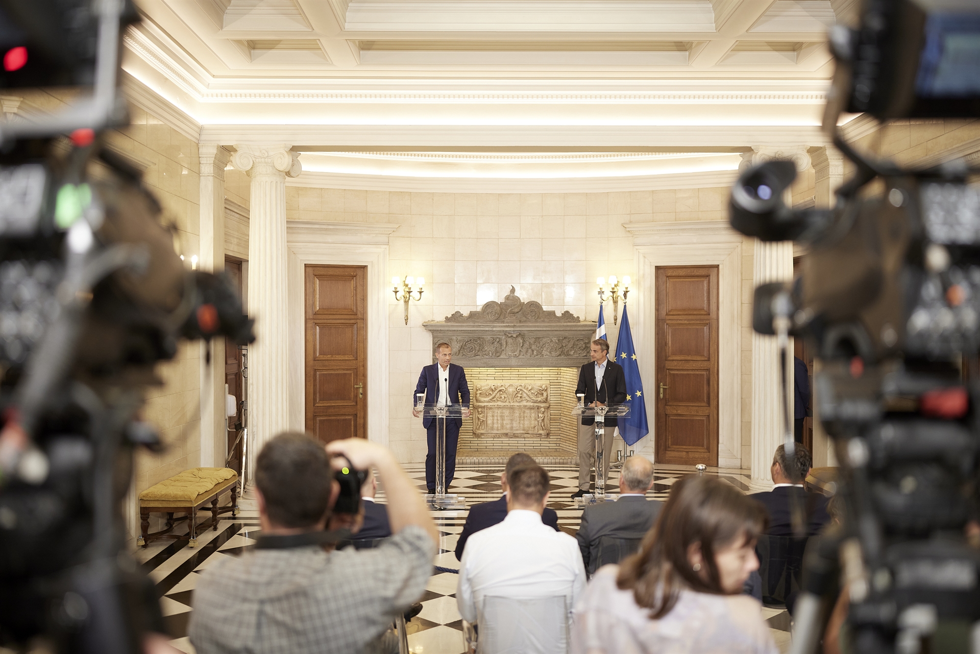 Λίγο πριν από τη συνάντηση με τους τέσσερις προέδρους των μεγάλων ΠΑΕ, ο πρωθυπουργός είχε τετ α τετ στο Μαξίμου με τον πρόεδρο της UEFA Αλεξάντερ Τσέφεριν. Ο κ. Μητσοτάκης αναφέρθηκε σε «εγκληματικές ομάδες που ταξιδεύουν στην Ευρώπη με πρόσχημα το ποδόσφαιρο και κάνουν επιδρομές θανάτου». Ιδιαίτερη, δε, μνεία έκανε στην προσπάθεια την οποία πρέπει να καταβάλουν τα «αφεντικά» των ομάδων, που πρέπει να αναλάβουν τις ευθύνες τους. «Τα κενά πρέπει να καλυφθούν. Δεν θα πετύχουμε τον στόχο μας αν δεν βοηθήσουν και οι πρόεδροι. Και ειδικά των μεγάλων ΠΑΕ που ήρθαν εδώ κι έχουν χρέος να προστατέψουν το προϊόν και τις επενδύσεις τους», είπε χαρακτηριστικά. Κλείνοντας έστειλε μήνυμα ενότητας λέγοντας πως «τα παιδιά της κερκίδας είναι παιδιά της γειτονιάς. Δεν είναι στρατοί συμφερόντων. Είναι παιδιά που αγαπούν την ομάδα τους. Δεν νοείται να χάνεται ζωή. Το οφείλουμε στη μνήμη του Μιχάλη, του Αλκη και σε όλους αυτούς που αγαπούν το ποδόσφαιρο και τα σπορ, και ειδικά το ποδόσφαιρο που είναι χαρά και διασκέδαση. Δεσμευόμαστε να πετύχουμε τους στόχους μας». Από την πλευρά του ο πρόεδρος της UEFA Αλεξάντερ Τσέφεριν χρησιμοποίησε σκληρή γλώσσα κατά των δολοφόνων που ενδύονται τον οπαδικό μανδύα. «Είναι καταπληκτικό που βρισκόμαστε εδώ, αλλά παράλληλα και δύσκολο λόγω των θλιβερών επεισοδίων», είπε αρχικά, εξαπολύοντας στη συνέχεια επίθεση στους οργανωμένους «στρατούς» εγκληματιών. «Είμαστε λυπημένοι και εξαγριωμένοι λόγω των συμβάντων της παράλογης βίας», σημείωσε και πρόσθεσε πως «η βία είναι πρόβλημα ολόκληρης της Ευρώπης, όχι μόνο της Ελλάδας. Πρέπει να συνεργαστούμε όχι μόνο με την Ευρωπαϊκή Ενωση, αλλά και στο Συμβούλιο της Ευρώπης, και ζητώ από τον πρωθυπουργό να βοηθήσει σε αυτό».