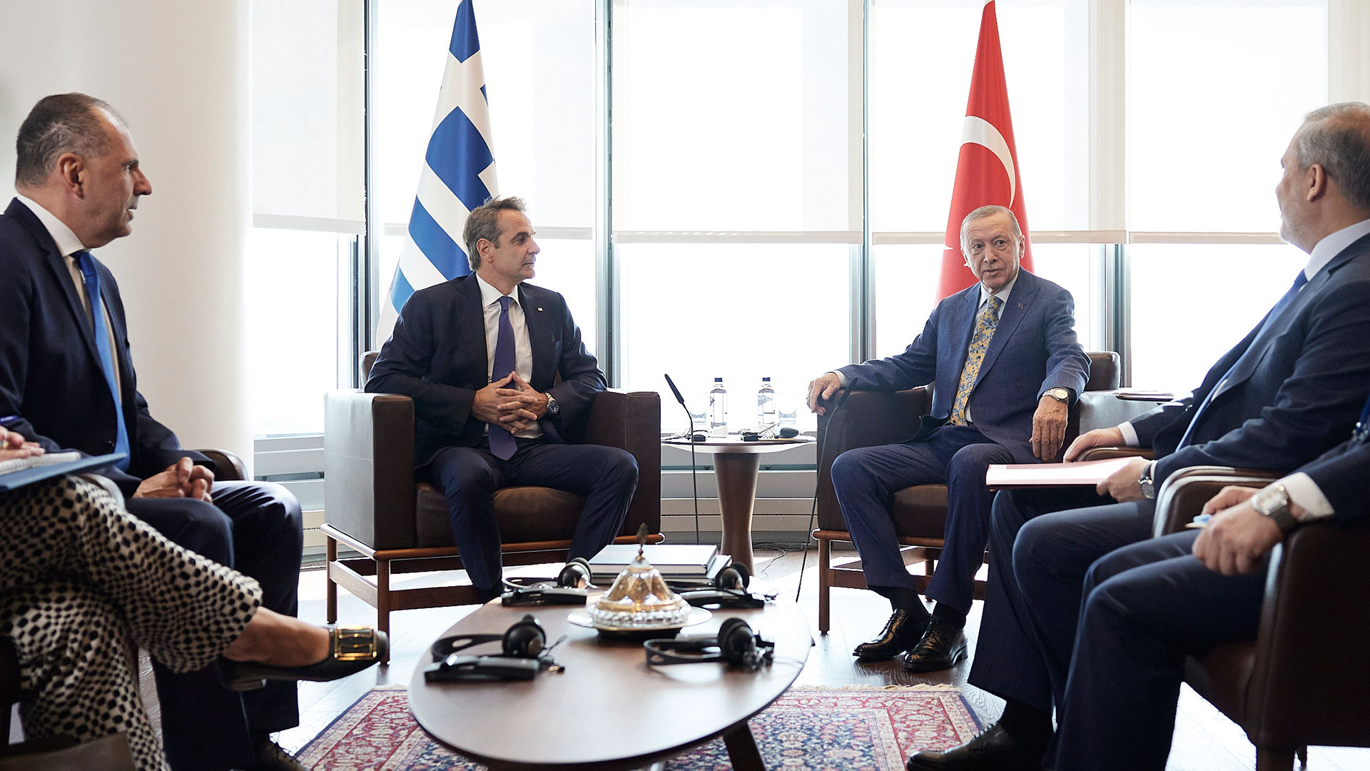 Ο Ταγίπ Ερντογάν φρόντισε την παραμονή της συνάντησης με τον Κυριάκο Μητσοτάκη να χαλάσει το κλίμα, ζητώντας από το βήμα του ΟΗΕ την αναγνώριση του ψευδοκράτους. Η ελληνική πλευρά απάντησε μέσω του υπουργού Εξωτερικών Γιώργου Γεραπετρίτη. Η βασική απάντηση, όμως, ήταν σημειολογική και αποτυπώθηκε στο πρόγραμμα του πρωθυπουργού. Αμέσως μετά τη χθεσινή συνάντησή του με τον Ερντογάν, ο Ελληνας πρωθυπουργός προγραμμάτισε τετ α τετ με τον Κύπριο πρόεδρο Νίκο Χριστοδουλίδη, για να τον ενημερώσει για όσα ειπώθηκαν αλλά και για να στείλει μήνυμα στην Αγκυρα πως το μέτωπο Αθήνας και Λευκωσίας είναι ενιαίο και αδιαίρετο.