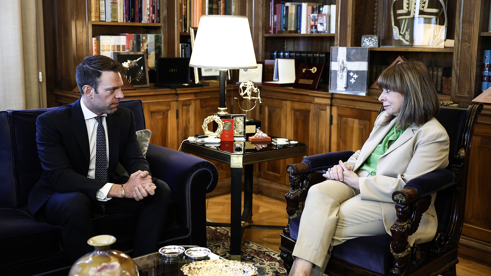 Την πρώτη του συνάντηση με την Πρόεδρο της Δημοκρατίας, Κατερίνα Σακελλαροπούλου είχε ο νέος αρχηγός της αξιωματικής αντιπολίτευσης και πρόεδρος του ΣΥΡΙΖΑ-Π.Σ., Στέφανος Κασσελάκης, στο Προεδρικό Μέγαρο.