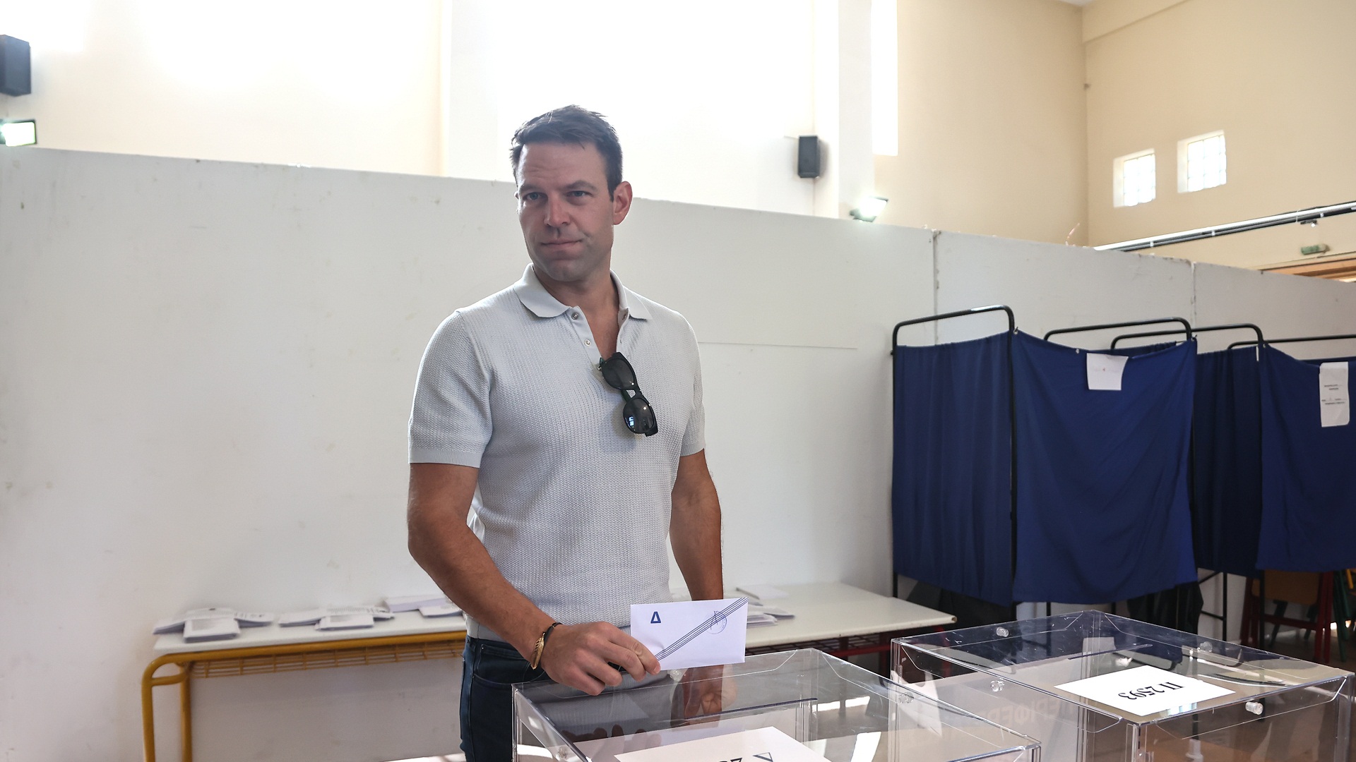 Ο πρόεδρος του ΣΥΡΙΖΑ-Προοδευτική Συμμαχία, Στέφανος Κασσελάκης, άσκησε το εκλογικό του δικαίωμα στο Δημοτικό Σχολείο Εκάλης.
