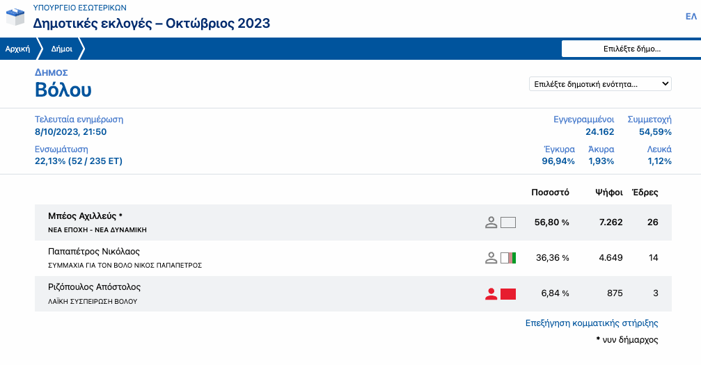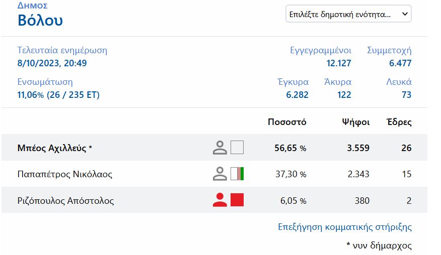 - 20:58Δήμος Βόλου: Άνετο προβάδισμα Μπέου