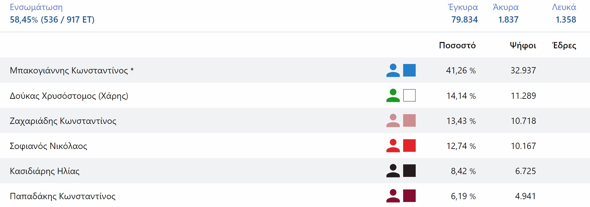 - 21:48Διατηρεί το προβάδισμά του ο Δούκας έναντι του Ζαχαριάδη για τη δεύτερη θέση - Πάνω από 41% ο Μπακογιάννης