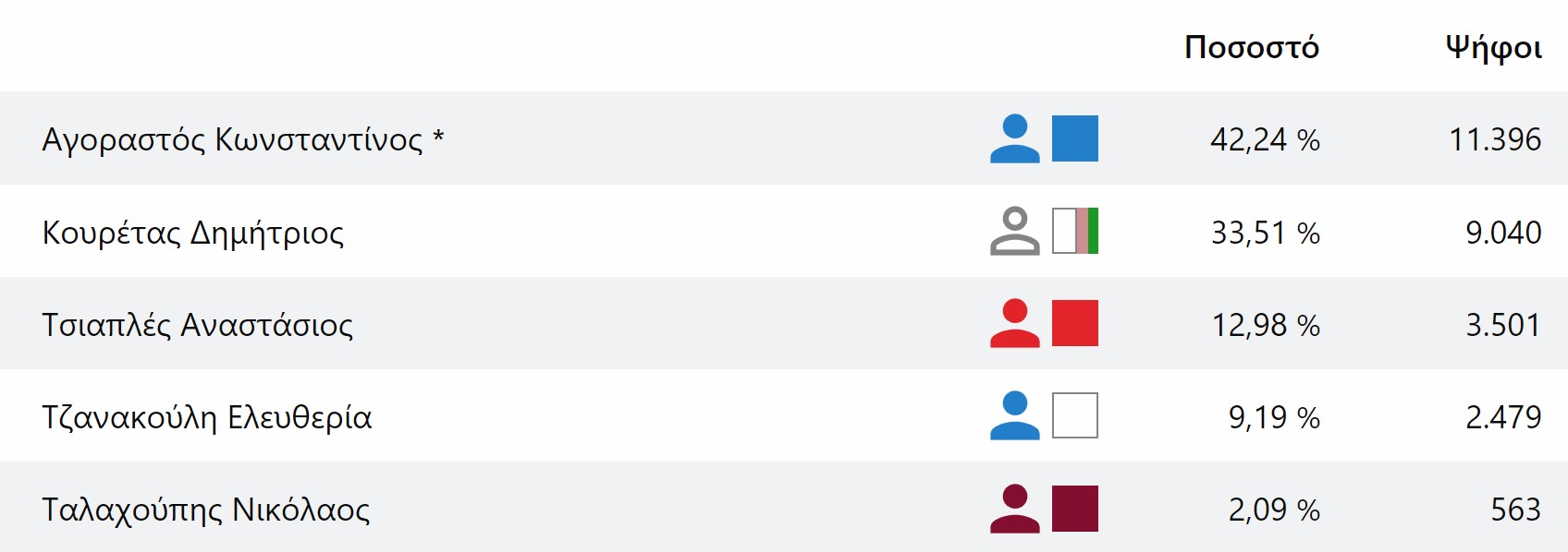 - 21:06Νίκη Μαμάκου στη Λάρισα, σύμφωνα με τα αποτελέσματα στο 14,6% της ενσωμάτωσης: