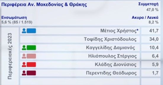 - 20:00Περιφέρεια Ανατολικής Μακεδονίας και Θράκης, ενσωμάτωση στο 5,6%: