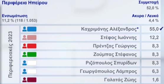 - 20:25Περιφέρεια Ηπείρου: Νίκη Καχριμάνη από τον α' γύρο με ενσωμάτωση στο 11,2%