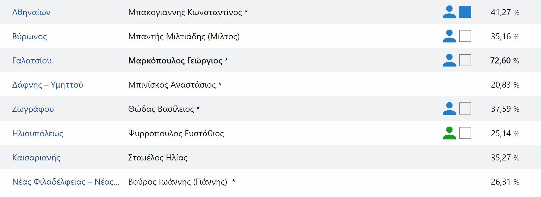 - 20:33Ανετη επανεκλογή για 10 δημάρχους στο λεκανοπέδιο - Αλλαγή σκυτάλης στην Κηφισιά