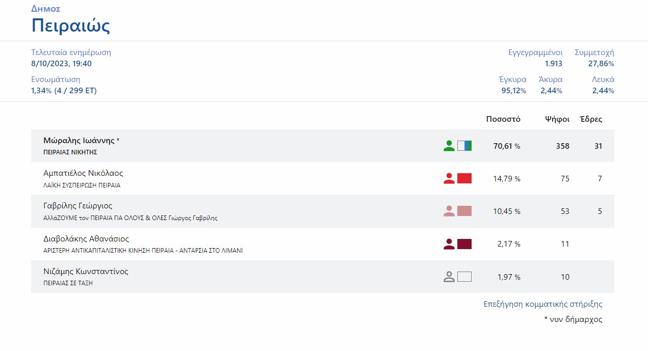 - 19:49Η πρώτη εικόνα στον Δήμο Πειραιά, με ενσωμάτωση 1,34%