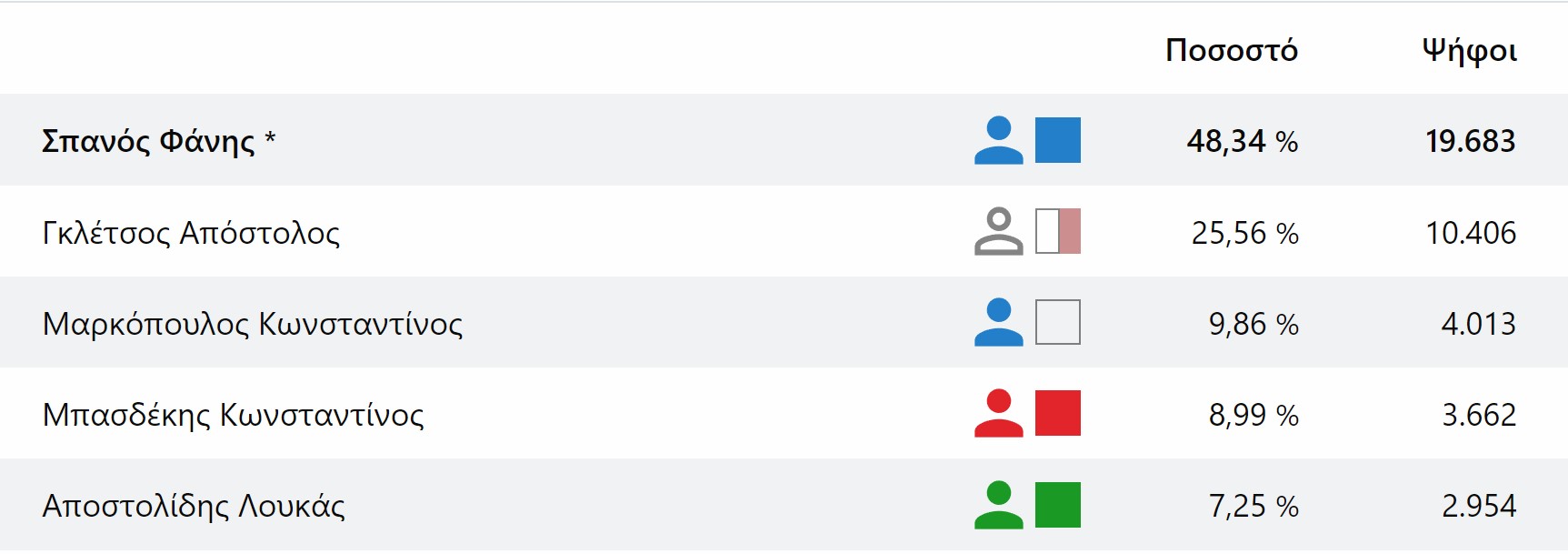 - 20:54Νίκη Σπανού από τον α' γύρο στην Στερεά Ελλάδα (17,3% ενσωμάτωση)
