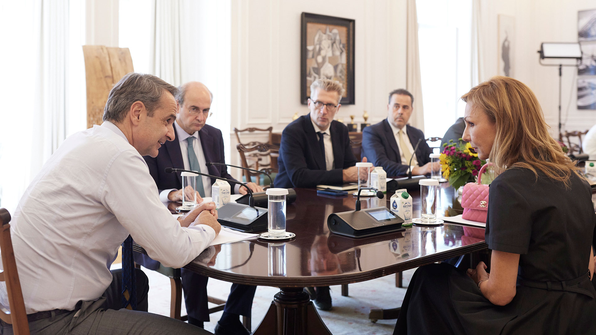 Στη συνάντηση έλαβαν μέρος, από την πλευρά της κυβέρνησης, ο υπουργός Εθνικής Οικονομίας και Οικονομικών Κωστής Χατζηδάκης, οι υπουργοί Επικρατείας Σταύρος Παπασταύρου και Ακης Σκέρτσος και ο υφυπουργός παρά τω πρωθυπουργώ Γιάννης Μπρατάκος.