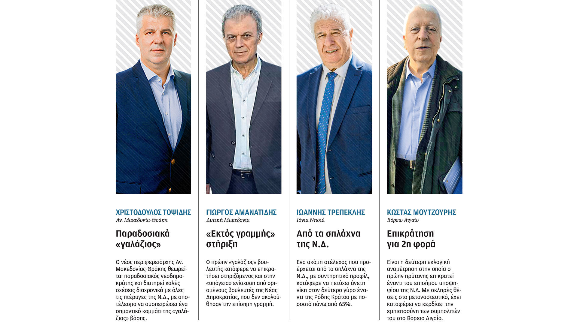Ενας τρίτος λόγος της μεγάλης επικράτησης των ανεξάρτητων υποψηφίων έχει να κάνει με εσωτερικά ζητήματα της Νέας Δημοκρατίας. Είναι κοινό μυστικό πως σε συγκεκριμένες περιφέρειες οι «γαλάζιοι» βουλευτές δεν συντάχθηκαν με την κεντρική επιλογή για διαφορετικούς λόγους. Αλλος λόγω προσωπικής πικρίας επειδή δεν παρέμειναν στο κυβερνητικό σχήμα μετά τις τελευταίες εκλογές, άλλος διότι θεωρεί πως δεν αξιοποιήθηκε, άλλος λόγω προσωπικής φιλίας με τον αντάρτη υποψήφιο. Η ουσία είναι πως πολλοί «γαλάζιοι» βουλευτές στήριξαν τον επίσημο υποψήφιο μόνο στα χαρτιά και στο παρασκήνιο έδωσαν μάχη για τον ανεξάρτητο. Τέτοια παραδείγματα υπάρχουν και στο Βόρειο Αιγαίο και στην Κομοτηνή και στην Καβάλα, αλλά και σε Κοζάνη και Καστοριά, όπου βουλευτές και στελέχη της Ν.Δ. δεν υπάκουσαν στη γραμμή του κόμματος.