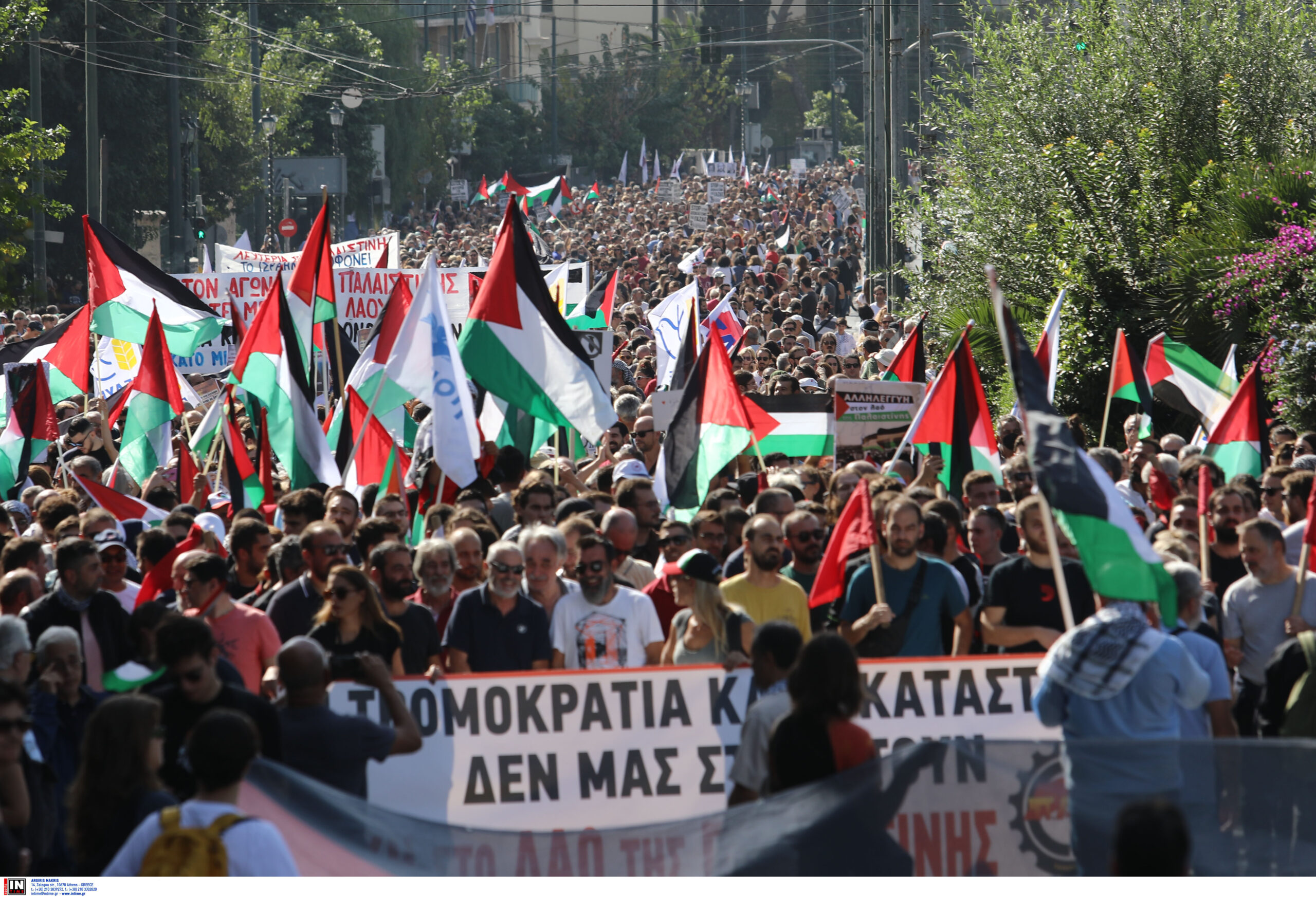 Χιλιάδες διαδηλωτές, ανταποκρινόμενοι στο κάλεσμα που έκαναν χθες το ΠΑΜΕ και εργατικά συνδικάτα, πήραν μέρος σε μεγάλο συλλαλητήριο στην Αθήνα, το μεσημέρι της Κυριακής, με κυρίαρχο το αίτημα «να σταματήσει η σφαγή του παλαιστινιακού λαού στη Γάζα».