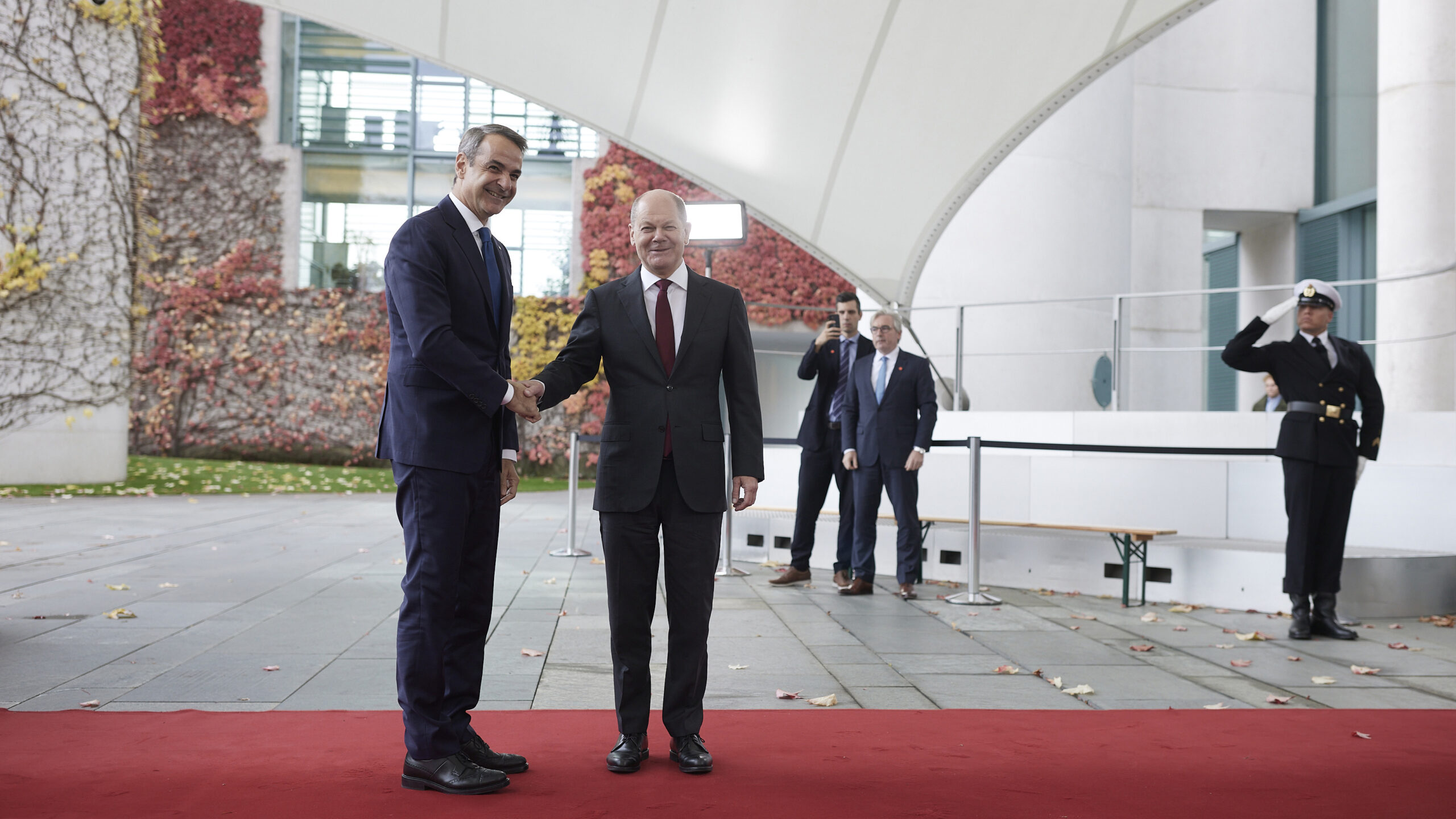 Ολοκληρώθηκε η συνάντηση του Κυριάκου Μητσοτάκη με τον Γερμανό καγκελάριο Ολαφ Σολτς στο Βερολίνο.