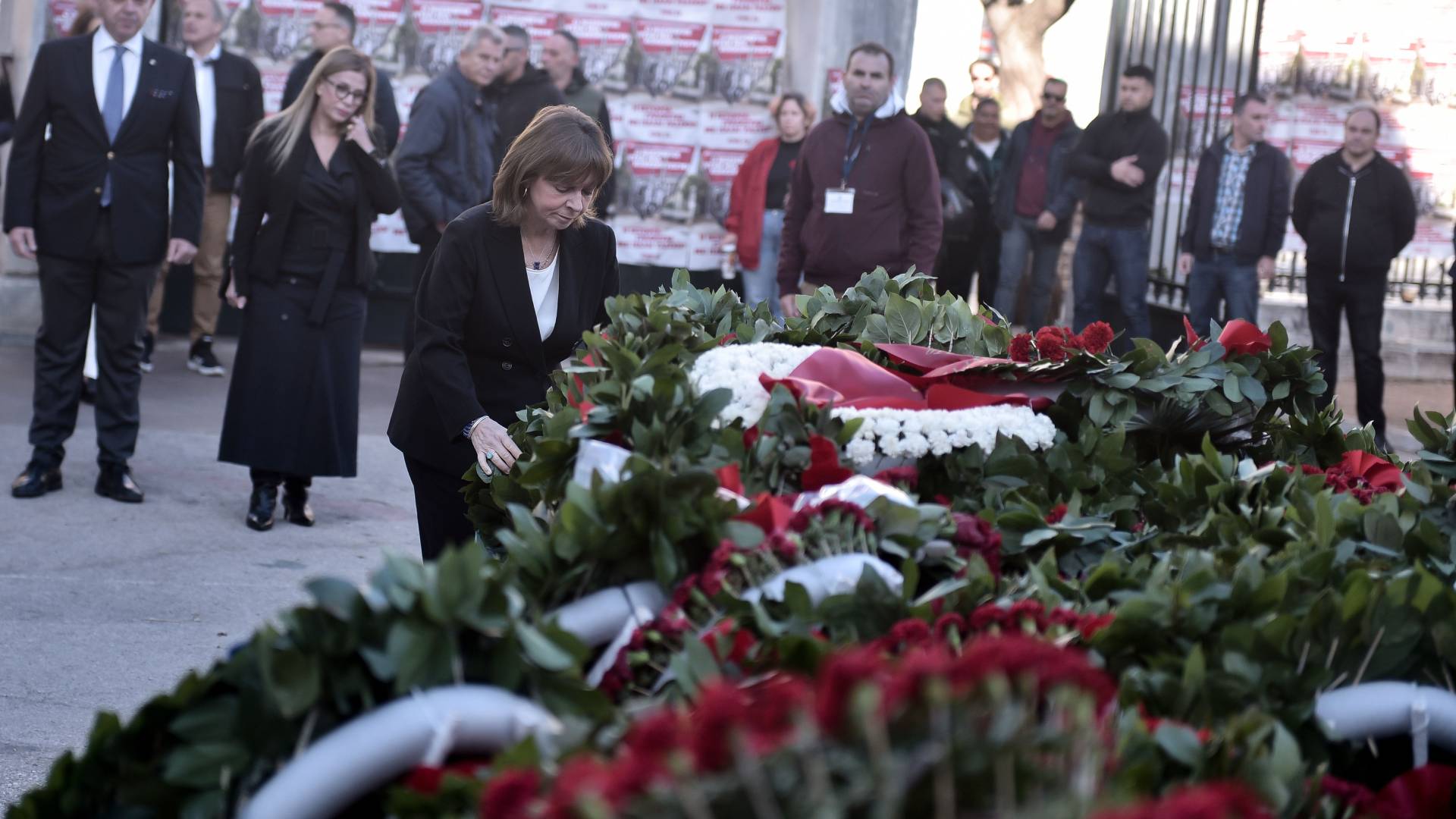 Η Κατερίνα Σακελλαροπούλου πέρασε την πύλη του Πολυτεχνείου στις 9.00, κατέθεσε το στεφάνι της και στη συνέχεια αποχώρησε.