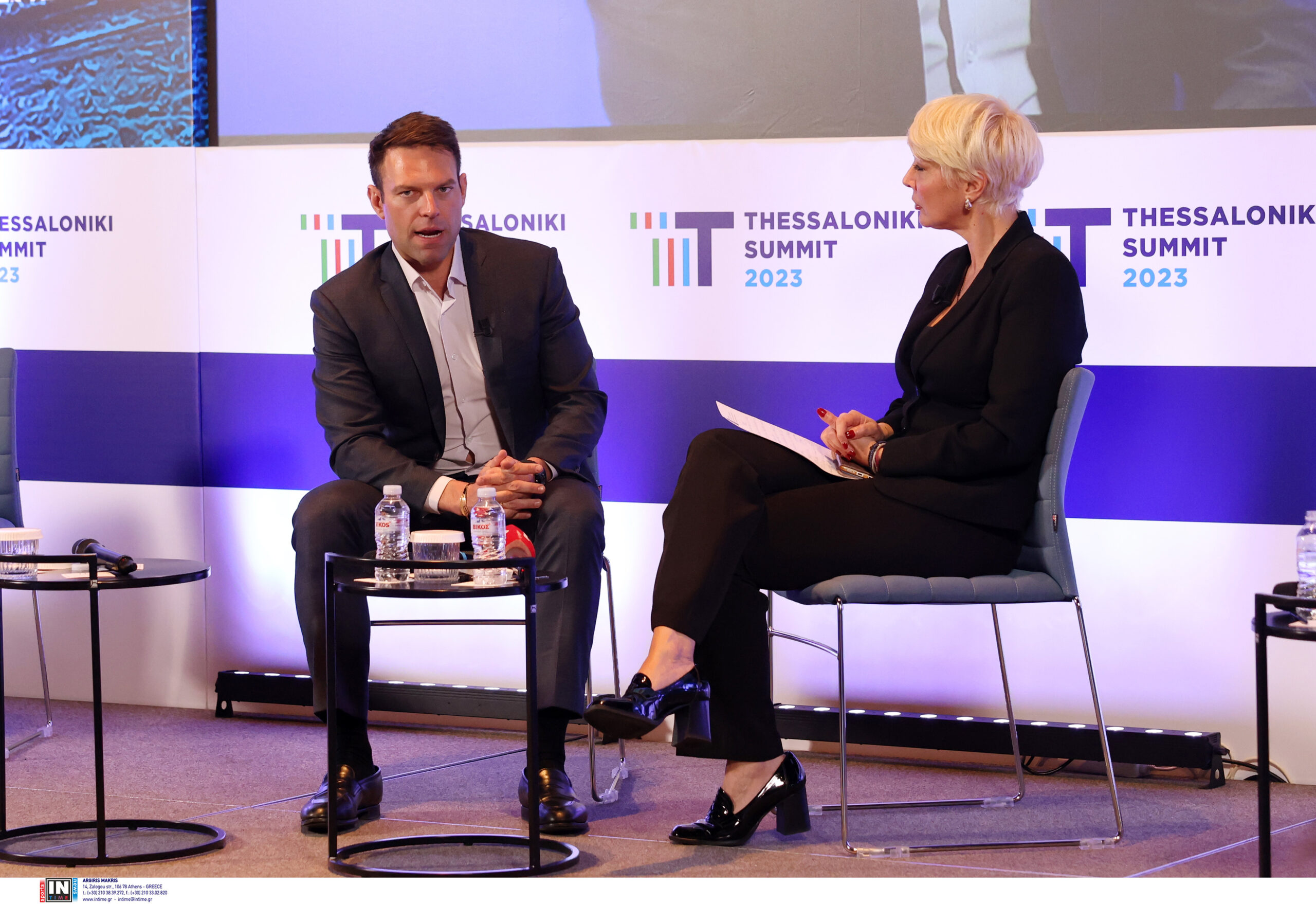 Προσερχόμενος στον χώρο διεξαγωγής του Thessaloniki Summit, o Στέφανος Κασσελάκης συναντήθηκε με τον Νίκο Ανδρουλάκη, που εκείνη την ώρα αποχωρούσε, κι έκαναν χειραψία.
