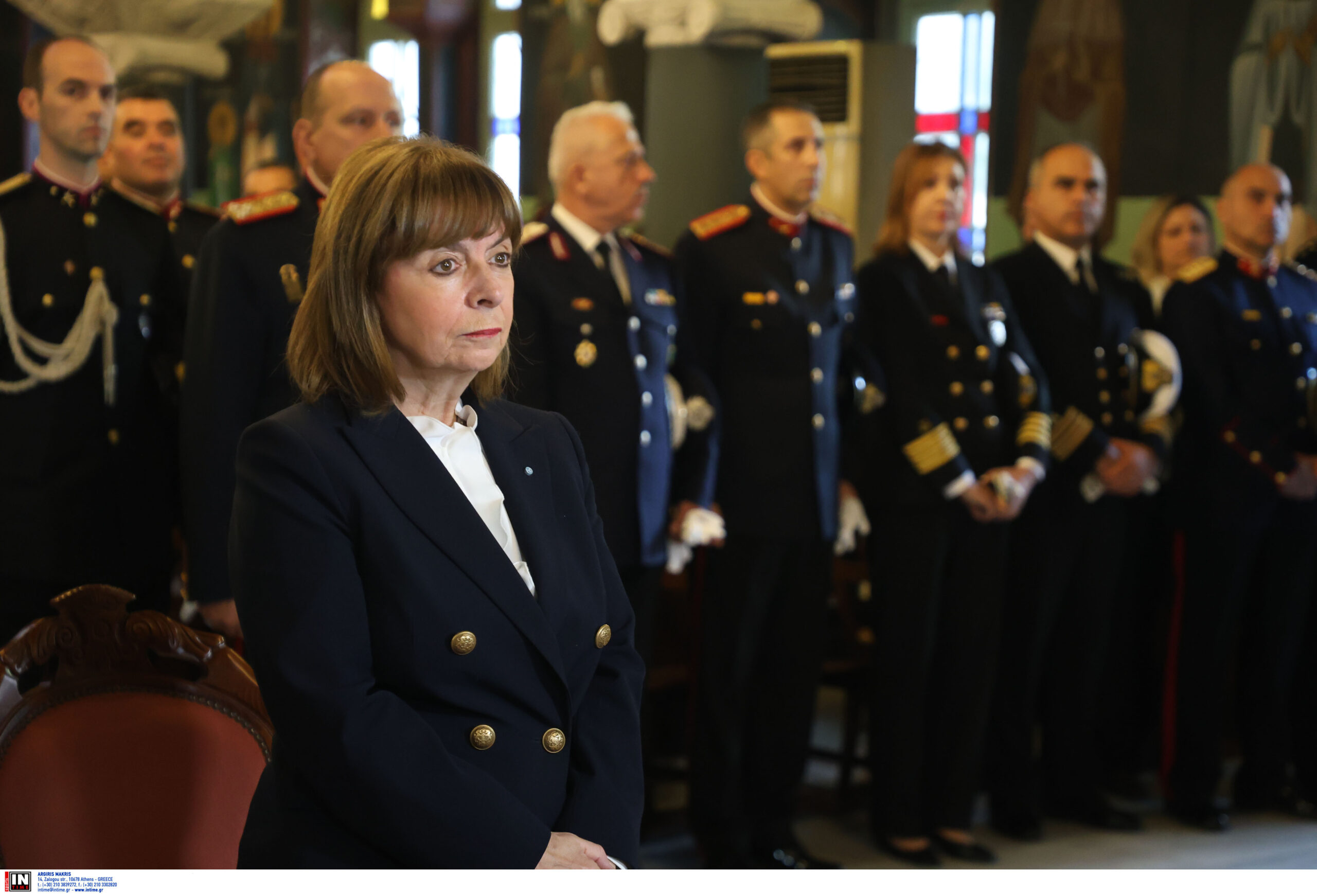 Η κ. Σακελλαροπούλου έφτασε στην πόλη λίγο μετά τις 10 το πρωί και παραστάθηκε στη δοξολογία που τελέστηκε στον Μητροπολιτικό Ναό για τη σημερινή εορτή.