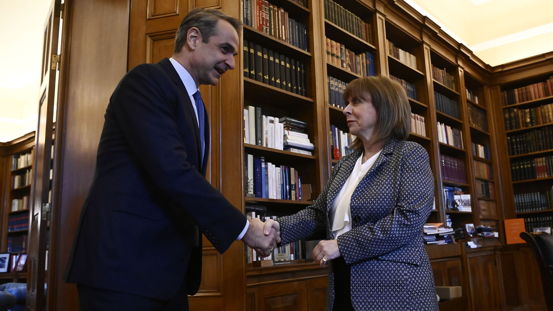 Σε εξέλιξη βρίσκεται η συνάντηση του Κυριάκου Μητσοτάκη με την Πρόεδρο της Δημοκρατίας στο Προεδρικό Μέγαρο, στο πλαίσιο της καθιερωμένης μηνιαίας ενημέρωσης του πρωθυπουργού προς την κ. Κατερίνα Σακελλαροπούλου.