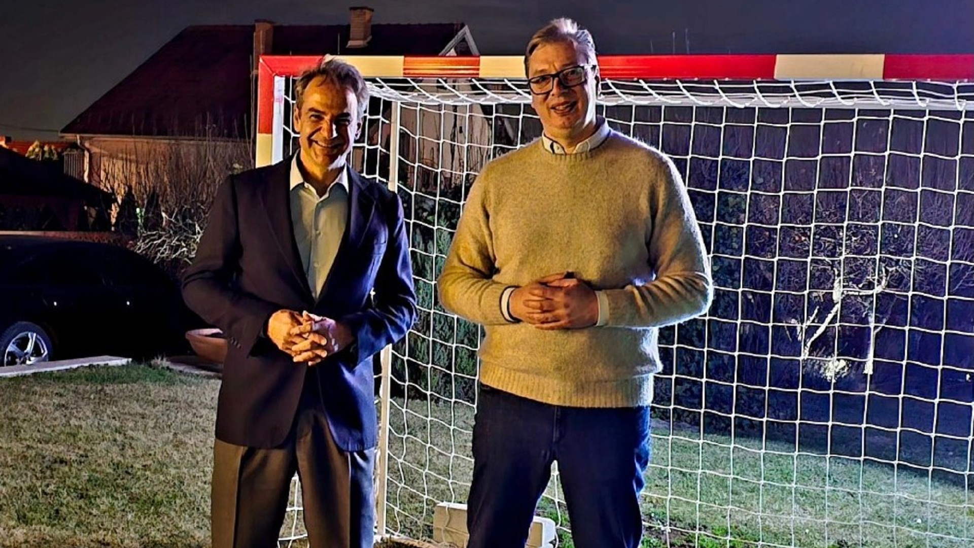 Ο κ. Βούτσιτς μάλιστα ανήρτησε στο Instagram φωτογραφία μαζί με τον Ελληνα πρωθυπουργό μπροστά από μία εστία ποδοσφαίρου όπου έγραψε: «Αυτήν την εστία πίσω από τον πρωθυπουργό Μητσοτάκη και εμένα την αγόρασε ο πατέρας μου για τον μικρό Βούκαν (σ.σ. ο εξάχρονος γιος του Αλ. Βούτσιτς). Ο Κυριάκος και εγώ απλά βγήκαμε φωτογραφία με την μπάλα. Χαίρομαι που μπορώ να φιλοξενήσω ένα μεγάλο φίλο της Σερβίας, είμαι περήφανος για την προσωπική μας σχέση, πιστεύω ότι απόψε και αύριο (σ.σ. την Κυριακή και τη Δευτέρα) θα επιτύχουμε σπουδαία αποτελέσματα στη βελτίωση της συνεργασίας μεταξύ των αδελφών λαών, του σερβικού και του ελληνικού».