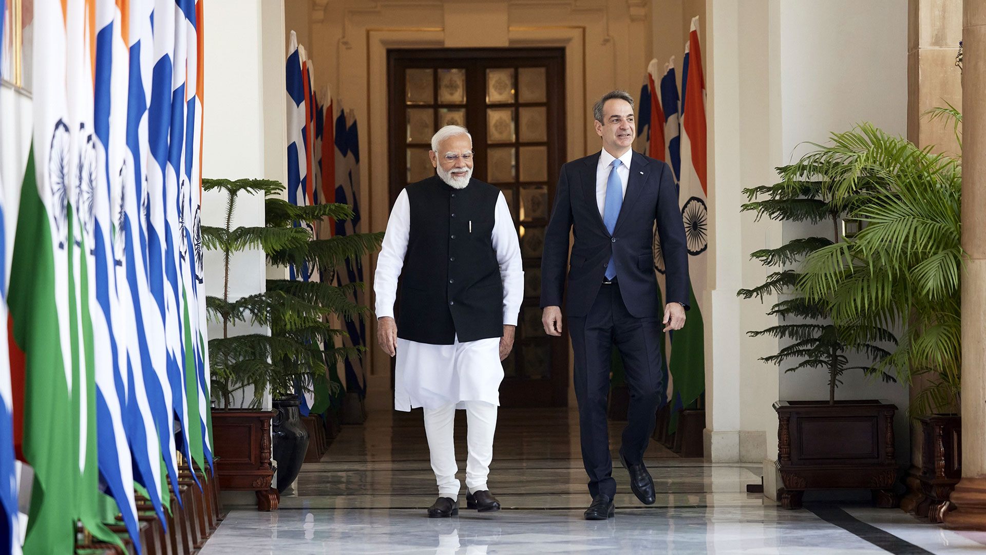 Στην ενίσχυση της συνεργασίας προκειμένου Αθήνα και Νέο Δελχί να έρθουν πιο κοντά στους τομείς της άμυνας, της αντιτρομοκρατικής δράσης, της κυβερνοασφάλειας και της παροχής ασφάλειας στη θάλασσα συμφώνησαν χθες, μεταξύ άλλων, οι πρωθυπουργοί Ελλάδας και Ινδίας Κυριάκος Μητσοτάκης και Ναρέντρα Μόντι στη συνάντηση που είχαν στην πρωτεύουσα της πολυπληθέστερης χώρας του κόσμου. Στην ατζέντα βρέθηκε, ακόμη, η ενίσχυση της συνεργασίας στην υψηλή τεχνολογία, στον τομέα των υποδομών και στην πράσινη μετάβαση, ενώ από τη συζήτηση δεν έλειψε, προφανώς, η κατάσταση στη Μέση Ανατολή, η οποία αποτελεί χώρο σύγκλισης των στρατηγικών συμφερόντων των δύο χωρών και αυτή τη στιγμή βρίσκεται σε αναβρασμό.