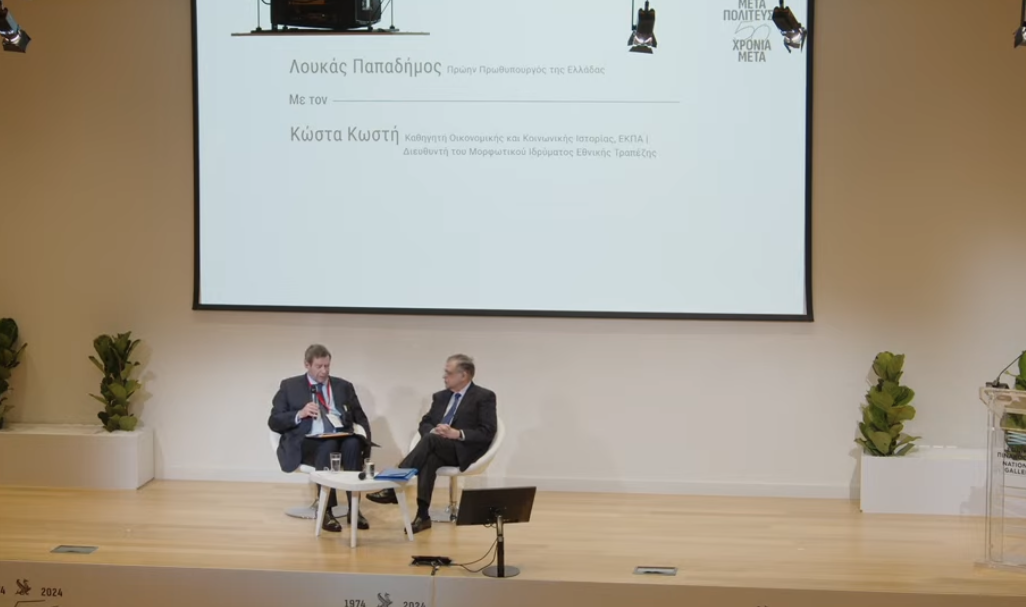 - 20:53Η δημοκρατία και τα ορόσημα για την Ελληνική Οικονομία, βρέθηκαν στο επίκεντρο της συζήτησης μεταξύ του πρώην Πρωθυπουργού Λουκά Παπαδήμου και του καθηγητή Οικονομικής και Κοινωνικής Ιστορίας Κώστα Κωστή.Παρακολουθήστε το συνέδριο «Μεταπολίτευση: 50 Χρόνια μετά»:… pic.twitter.com/bya9fz3Sm8