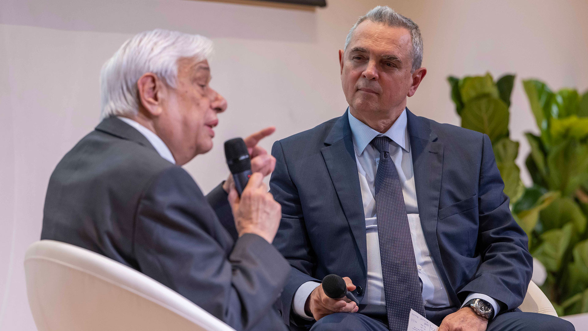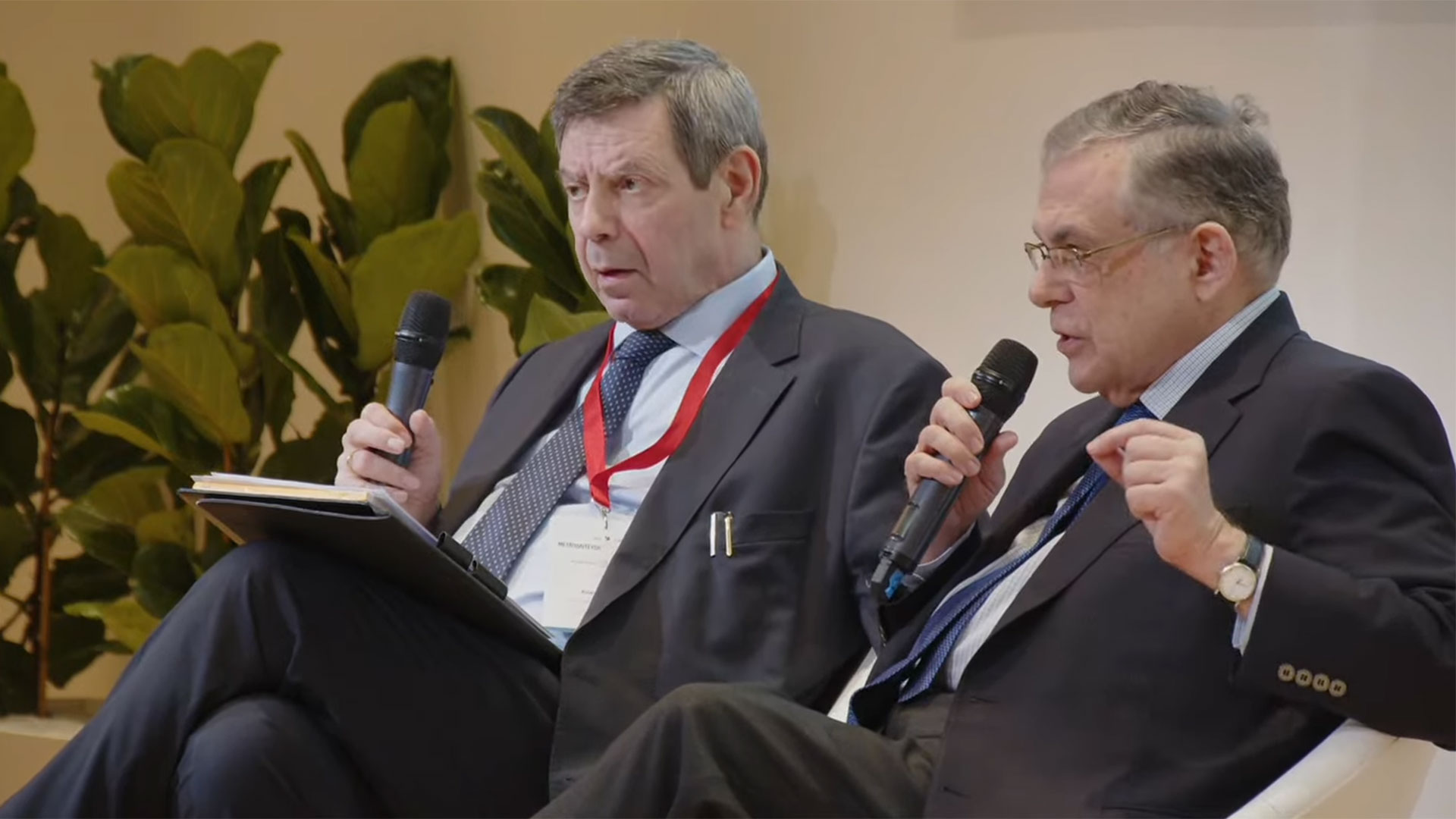 Ο Ευάγγελος Βενιζέλος, πρώην Αντιπρόεδρος της Ελληνικής Κυβέρνησης, σε πηγαδάκι με τον Kevin Featherstone, Καθηγητή της Έδρας Σύγχρονων Ελληνικών Σπουδών «Ελευθέριος Βενιζέλος» και Διευθυντή του Ελληνικού Παρατηρητηρίου.