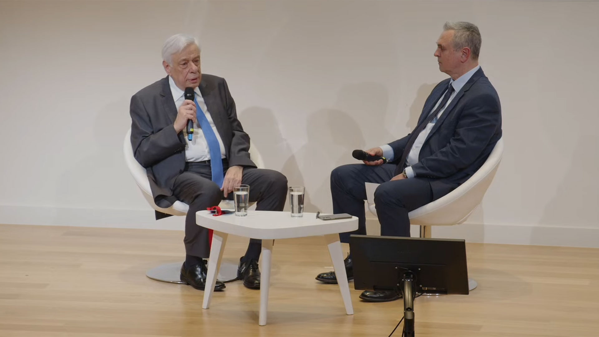 - 18:37Ο πρώην πρωθυπουργός Λουκάς Παπαδήμος συνομιλεί με τον καθηγητή Οικονομικής και Κοινωνικής Ιστορίας Κώστα Κωστή