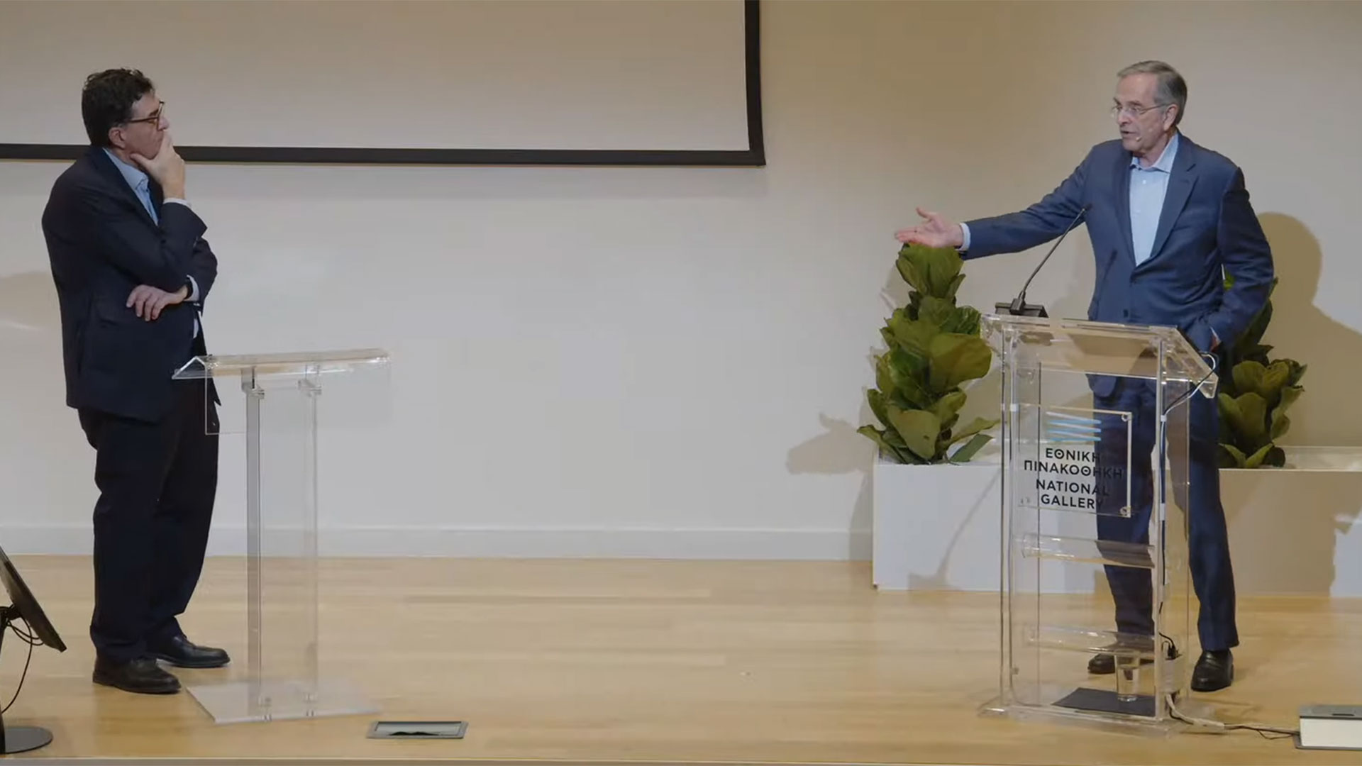 - 14:19Ακολουθεί σε λίγα λεπτά συζήτηση με τον πρώην πρωθυπουργό Αντώνη Σαμαρά και τον διευθυντή της «Καθημερινής», Αλέξη Παπαχελά