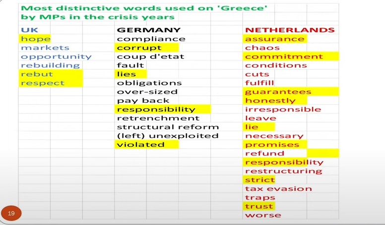 Λέξεις που αφορούσαν την Ελλάδα από τα τρία Κοινοβούλια στη διάρκεια της κρίσης: