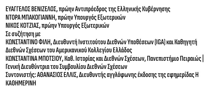 Ακολουθεί πάνελ με τίτλο «Ελληνικά Θέματα Εξωτερικής Πολιτικής»
