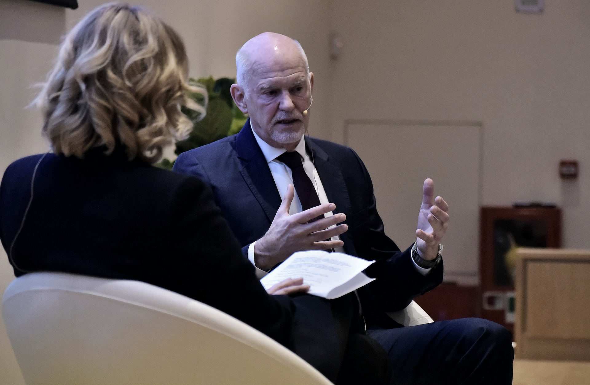 Αναφέρθηκε στη μόνιμη σύγκρουση στην Ελλάδα «μεταξύ των δυνάμεων που θέλουν βαθιές, ριζικές, δημοκρατικές αλλαγές που επιτρέπουν τη συμπερίληψη και των δυνάμεων που θέλουν να μας πάνε πίσω σε μία λογική νομής εξουσίας, μία ελίτ που θέλει να ελέγξει τα πράγματα». Από την πλευρά της, η κ. Κοσιώνη παρατήρησε ότι «τη στιγμή που γινόταν το ΑΣΕΠ, τη στιγμή που γεννιόταν το ΕΣΥ, που όλα αυτά ήταν κολοσσιαίες παρεμβάσεις για τη ζωή των Ελλήνων πολιτών, την ίδια στιγμή καλλιεργούνταν το πελατειακό κράτος, ένα υπερτροφικό, δυσλειτουργικό δημόσιο και μια κρατικοδίαιτη οικονομία», εντοπίζοντας μια κρίσιμη αντίφαση. «Πώς συμβίωναν αυτές οι δύο πλευρές και πόσο το πληρώσατε εσείς ως πρωθυπουργός;». Ο κ. Παπανδρέου διαπίστωσε ότι η σύγκρουση αυτή ήταν πράγματι μεγάλη, ακόμη και μέσα στο ΠΑΣΟΚ.