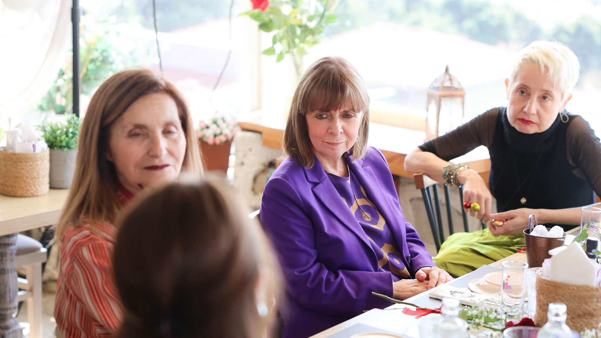 Αναλυτικά, στη συνάντηση με την Πρόεδρο της Δημοκρατίας συμμετείχαν η συγγραφέας Σοφία Νικολαΐδου, η γιατρός του ΕΚΑΒ Στέλλα Χρηστίδου, η ηθοποιός και σκηνοθέτιδα Ελένη Δημοπούλου, η διοικητική υπάλληλος της Ενωσης Συντακτών Μακεδονίας Θράκης Μαρία Πεκλάρη, η Βασιλική Καρτσιακλή, η οποία έχει εργαστεί, μεταξύ άλλων, ως αρχαιολόγος στο υπουργείο Πολιτισμού και η φοιτήτρια του Τμήματος Δημοσιογραφίας και ΜΜΕ Αρτεμησία Μαλιαρού.