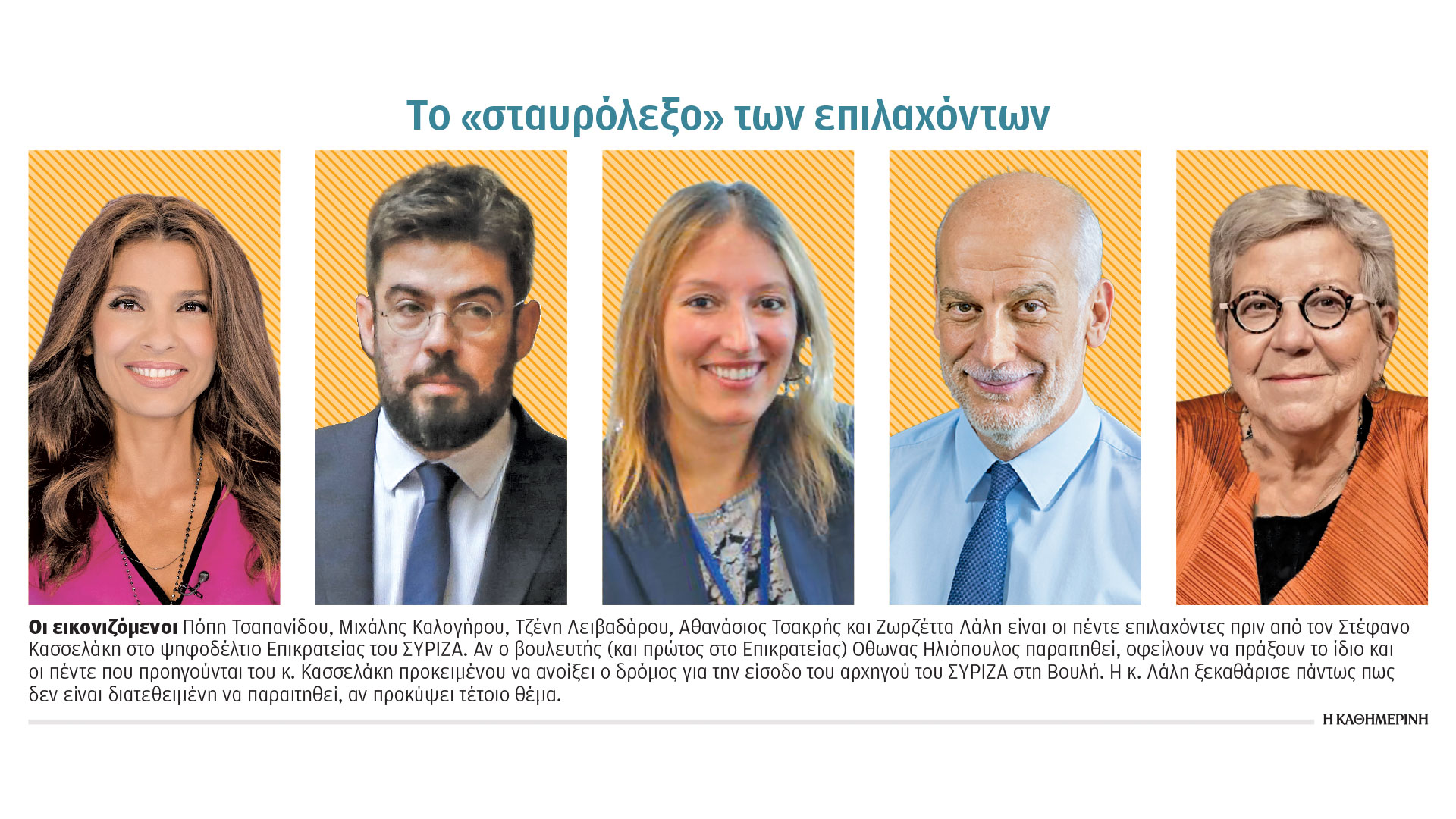 Η «Κ» είχε δημοσιεύσει πως φέρεται και το πανεπιστημιακό νοσοκομείο του Χάρβαρντ, σύμφωνα με πληροφορίες, να ζητεί «αυστηρή στεγανοποίηση» ανάμεσα στις δύο ιδιότητες που κατέχει ο κ. Ηλιόπουλος, όπως κάνει και με καθηγητές εκλεγμένους στις ΗΠΑ. Σε κάθε περίπτωση, η είσοδος ή μη του Στέφανου Κασσελάκη στη Βουλή εξαρτάται από τους επιλαχόντες του ψηφοδελτίου Επικρατείας. Δεν έχει αλλάξει η θέση του πως αυτό που επιθυμεί είναι να βρίσκεται στην κοινωνία. Ο πρόεδρος του ΣΥΡΙΖΑ είχε τοποθετηθεί στην ένατη θέση του ψηφοδελτίου Επικρατείας και πριν από αυτόν βρίσκεται η νομικός Ζωρζέττα Λάλη. Δημοσίευμα του ethnos.gr ανέφερε πως στο τηλεφώνημα που της έκανε ο Στέφανος Κασσελάκης, για το αν προτίθεται να παραιτηθεί στην περίπτωση που το ίδιο πράξουν και οι προηγούμενοι επιλαχόντες, η απάντηση ήταν αρνητική.