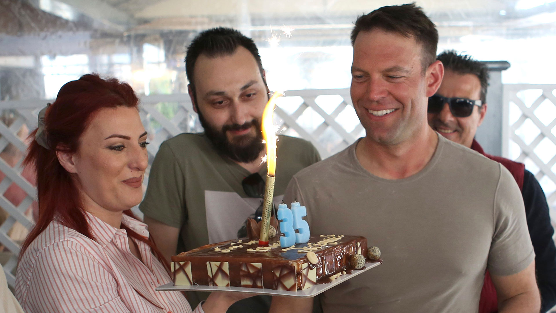 Τα λάθος κεράκια στην τούρτα που έσβησε, καθώς κλείνει τα 36 και όχι τα 35, δεν πτόησαν τον Στέφανο Κασσελάκη ο οποίος γιόρτασε με τον σύζυγό του Τάιλερ Μακμπέθ, τον πατέρα του, τον Ευάγγελο Αποστολάκη και τη μοίρα του τα γενέθλιά του σε ουζερί της Θήβας. Είχαν προηγηθεί η ορκωμοσία του και η παρέλαση μέσα στο στρατόπεδο, στη δεύτερη σειρά της μοίρας. Ο πατέρας του προέδρου του ΣΥΡΙΖΑ ήταν ιδιαιτέρως συγκινημένος, αφού και ο ίδιος είχε υπηρετήσει τη θητεία του στο ίδιο μέρος πριν από 50 χρόνια. Κάνοντας μια μικρή βόλτα στη Θήβα, ο Στέφανος Κασσελάκης δέχτηκε δώρα, όπως μια γραβάτα, ενώ στο μαγαζί που γιόρτασε τα γενέθλιά του ένα στρατιώτης του χάρισε ένα ουίσκι. Ο αρχηγός της αξιωματικής αντιπολίτευσης είχε την ευκαιρία να συνομιλήσει με τους δημοσιογράφους που από το πρωί ήταν μαζί του στη Θήβα. Τους αποκάλυψε πως την επόμενη εβδομάδα θα πάει περιοδεία στην Κρήτη, ότι θα επιμείνει στο θέμα των διεθνών παρατηρητών και πως τον χτυπάνε διότι βλέπουν ότι ανεβαίνει στις δημοσκοπήσεις. Χθες το βράδυ, κάλεσε εργαζομένους του ΣΥΡΙΖΑ, στελέχη και βουλευτές του κόμματος σε γνωστό μπαρ στου Ψυρρή. Μετά το τέλος της άδειας, ο κ. Κασσελάκης θα επιστρέψει στο στρατόπεδο της Θήβας για να πάρει το απολυτήριό του και θα κλείσει οριστικά ο κύκλος της στρατιωτικής θητείας, ώστε να αφοσιωθεί πλήρως στην κεντρική πολιτική σκηνή.