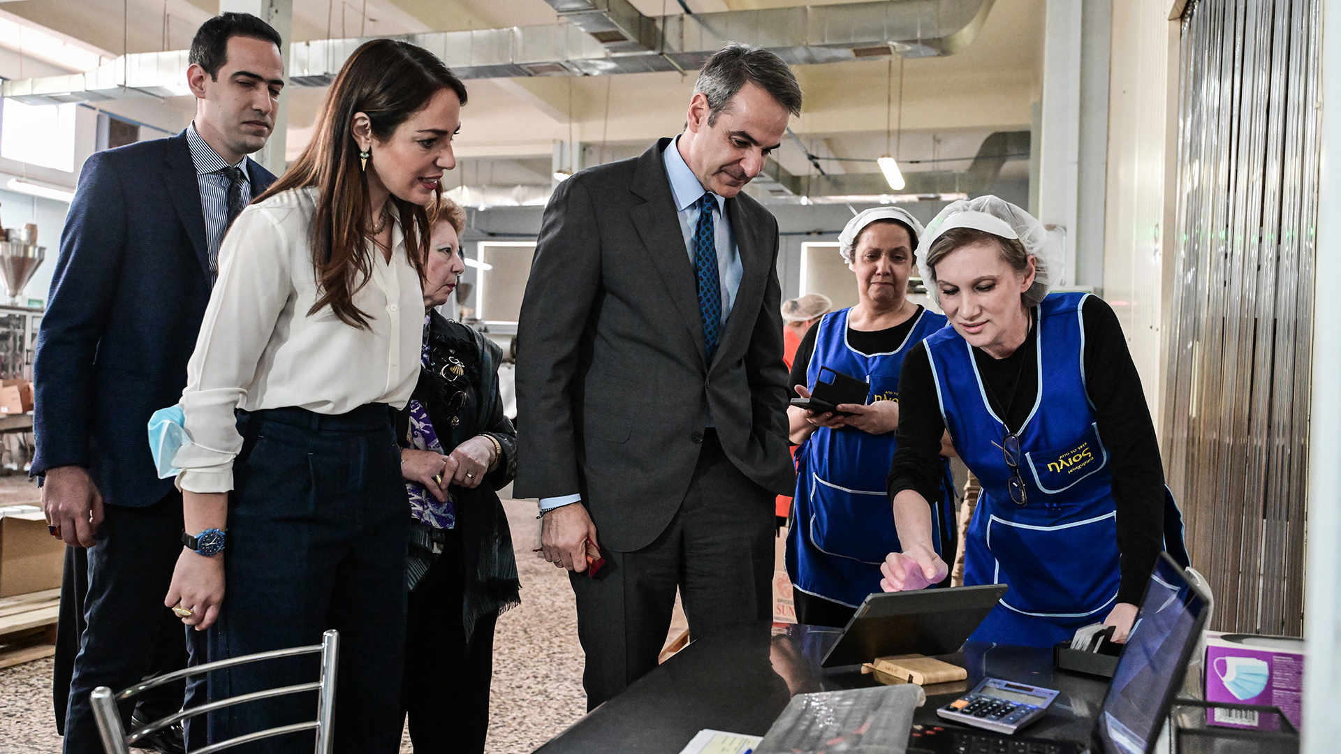 Ο πρωθυπουργός Κυριάκος Μητσοτάκης επισκέφθηκε το πρωί το εργοστάσιο της εταιρείας «Ηλιος Μπαχαρικά» στον Αγιο Ιωάννη Ρέντη. Ο πρωθυπουργός περιηγήθηκε στις εγκαταστάσεις από την πρόεδρο της επιχείρησης Στέλλα Διαμαντοπούλου.