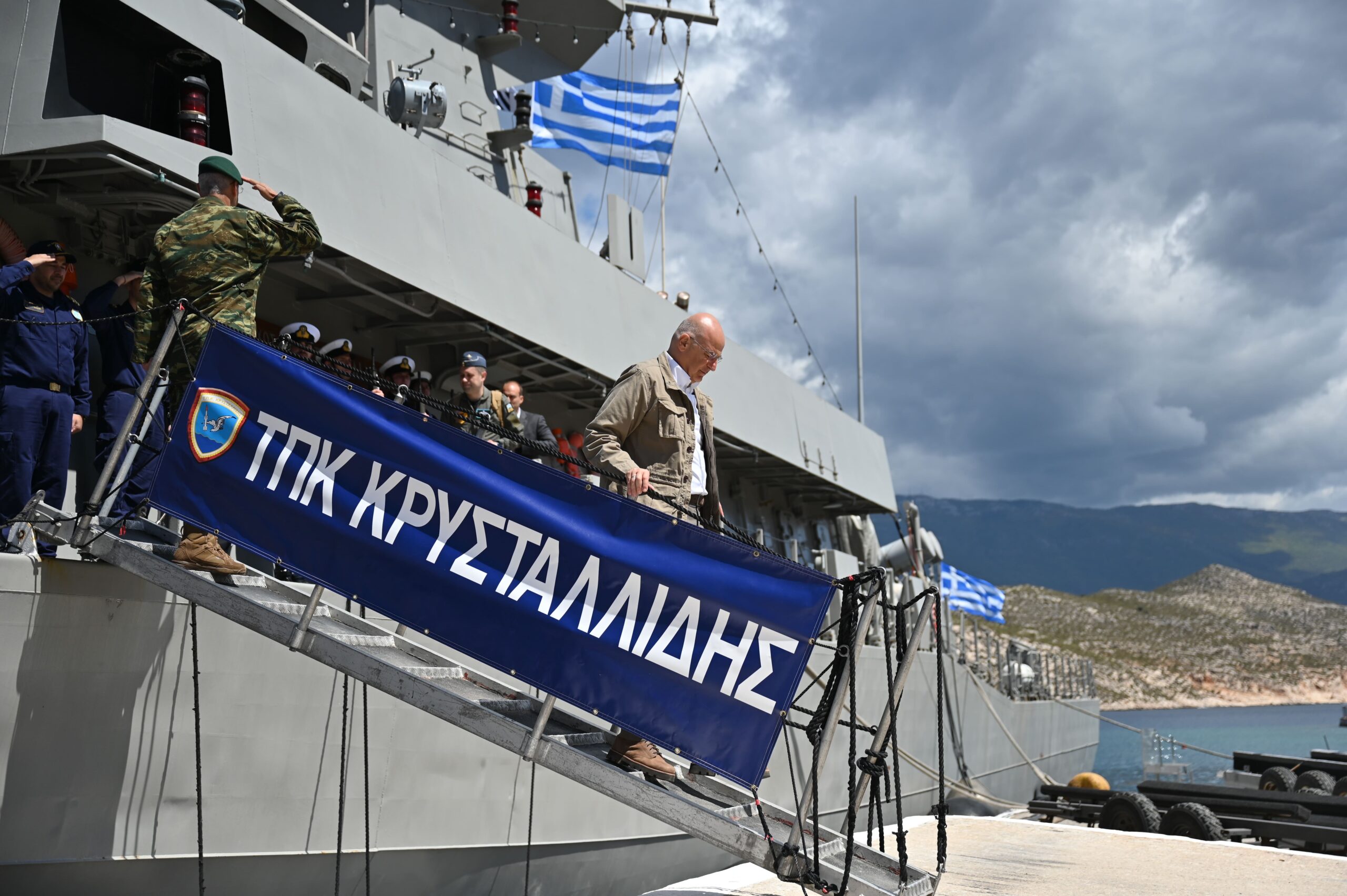 Ο υπουργός Εθνικής Aμυνας επισκέφτηκε την πυραυλάκατο «Κρυσταλλίδης» στο λιμάνι της Μεγίστης, όπου ευχήθηκε στον κυβερνήτη πλωτάρχη Δημήτριο Αγγελή και στο πλήρωμα χρόνια πολλά για το Πάσχα και τους ευχαρίστησε από καρδιάς για την υπηρεσία τους στην πατρίδα.