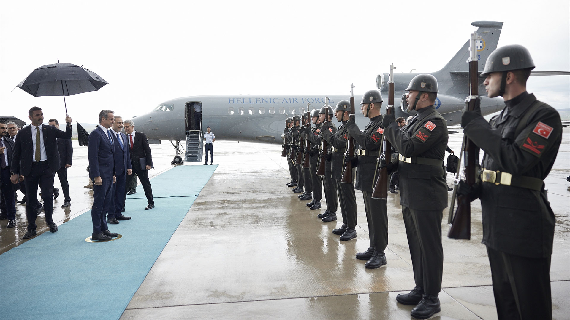 Ο Κυριάκος Μητσοτάκης έφτασε στην Αγκυρα στις 15.10 και τον υποδέχθηκε στο αεροδρόμιο ο υπουργός Εξωτερικών της Τουρκίας Χακάν Φιντάν με μια εγκάρδια χειραψία. Ο Ελληνας πρωθυπουργός έφτασε στο προεδρικό μέγαρο της Τουρκίας περίπου στις 4 μ.μ., με τον κ. Ερντογάν να τον υποδέχεται στα σκαλοπάτια της εισόδου. Ο πρόεδρος της Τουρκίας είπε στον κ. Μητσοτάκη «καλώς ήρθατε», και ο κ. Μητσοτάκης εξέφρασε τη χαρά του που βρίσκεται στην τουρκική πρωτεύουσα.