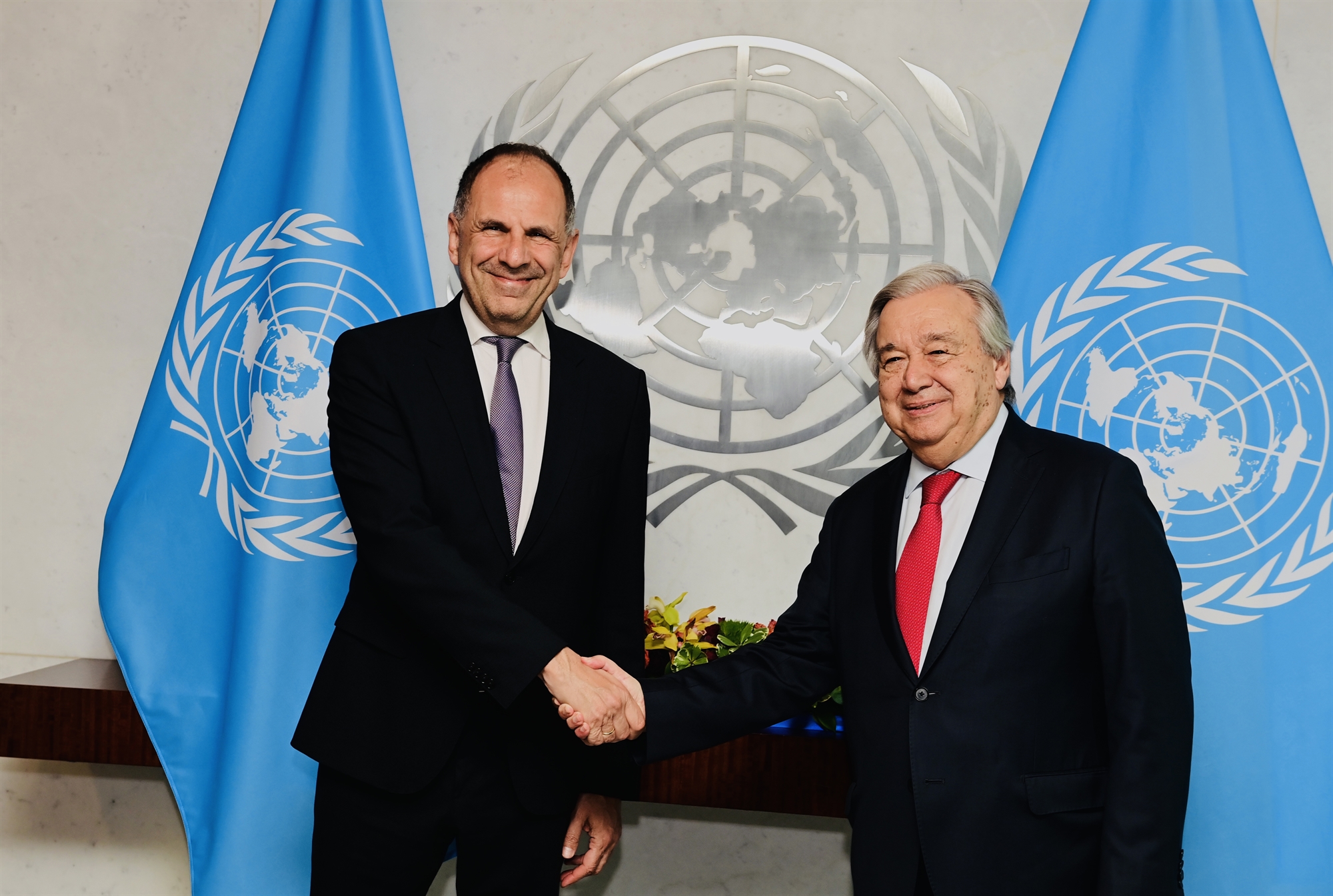 Μία ημέρα νωρίτερα και στο πλαίσιο της παρουσίας του στην έδρα του ΟΗΕ, ο επικεφαλής της ελληνικής διπλωματίας συναντήθηκε με τον γενικό γραμματέα των Ηνωμένων Εθνών Αντόνιο Γκουτέρες. Οπως σημείωσε ο κ. Γεραπετρίτης, είπε στον επικεφαλής του ΟΗΕ πως η Ελλάδα φιλοδοξεί από τη θέση της στο Συμβούλιο Ασφαλείας «να μπορέσει να ενώσει τον Βορρά με τον Νότο, την Ανατολή με τη Δύση, έτσι ώστε να δημιουργήσει μια φωνή λογικής, μια φωνή του διεθνούς δικαίου μέσα στον Οργανισμό Ηνωμένων Εθνών, για να μπορεί να ακουστεί η φωνή της Ελλάδας και όλων των κρατών που έχουν την ίδια κατανόηση». Και ο κ. Γεραπετρίτης συνέχισε: «Κάθε μορφής επιθετικότητα θα πρέπει να σταματήσει. Η ανθρωπιστική καταστροφή είναι πέρα από κάθε φαντασία. Δεν μπορούμε άλλο να καθυστερούμε την ειρήνη και την ευημερία στον κόσμο».