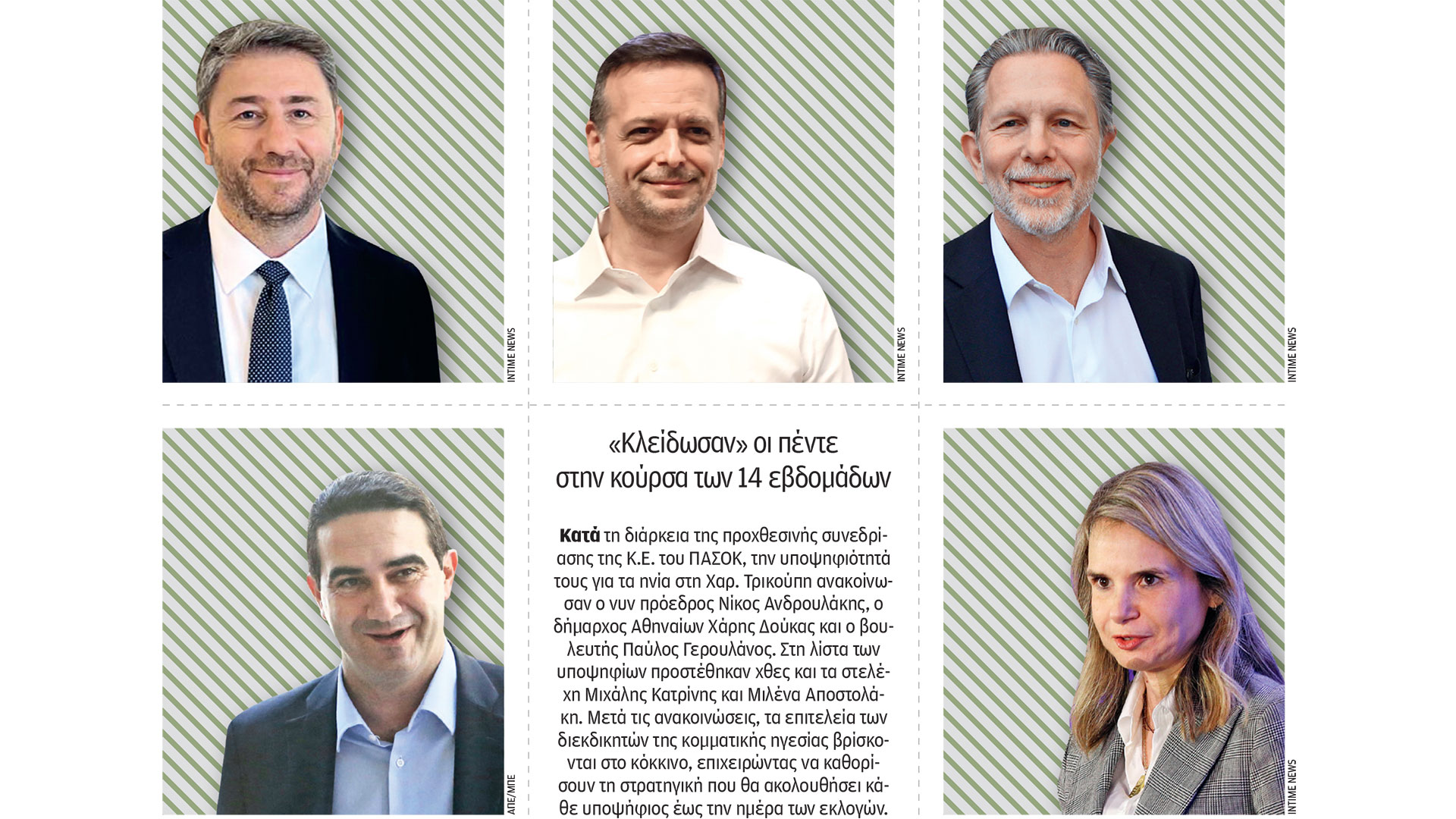 Οπως αναμενόταν, στην προχθεσινή συνεδρίαση της Κεντρικής Επιτροπής του κόμματος, ο νυν πρόεδρος Ν. Ανδρουλάκης δήλωσε πως θα διεκδικήσει την επανεκλογή του, ενώ ανακοίνωσαν τις υποψηφιότητές τους οι Χ. Δούκας και Π. Γερουλάνος. Χθες, όπως συζητούνταν το προηγούμενο διάστημα, οι Μιλένα Αποστολάκη και Μιχ. Κατρίνης επίσης ανακοίνωσαν ότι θα είναι υποψήφιοι για την αρχηγία.