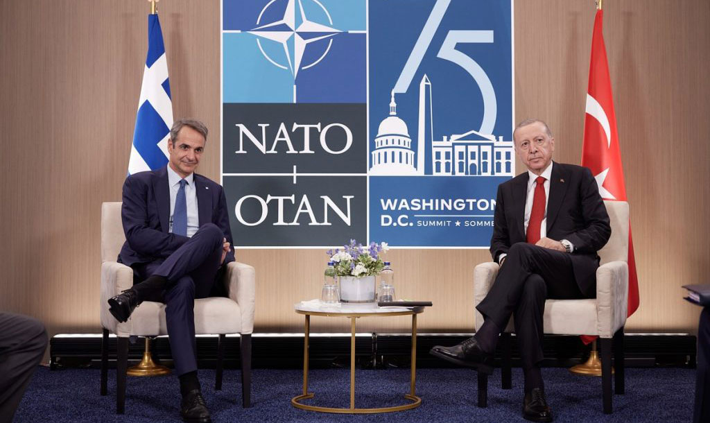 «Εποικοδομητική» χαρακτηρίζεται η διάρκειας 55 λεπτών χθεσινή συνάντηση του Κυριάκου Μητσοτάκη με τον Ταγίπ Ερντογάν στην Ουάσιγκτον παρουσία των υπουργών Εξωτερικών Γιώργου Γεραπετρίτη και Χακάν Φιντάν και των διπλωματικών συμβούλων των δύο ηγετών, Αννας-Μαρίας Μπούρα και Ακίφ Τσαγατάι Κιλίτς. Το τετ α τετ των δύο ηγετών που ο «καθαρός» του χρόνος ήταν περίπου 30 λεπτά καθώς υπήρχαν και οι μεταφράσεις, επιβεβαίωσε το καλό κλίμα μεταξύ των δύο πλευρών.